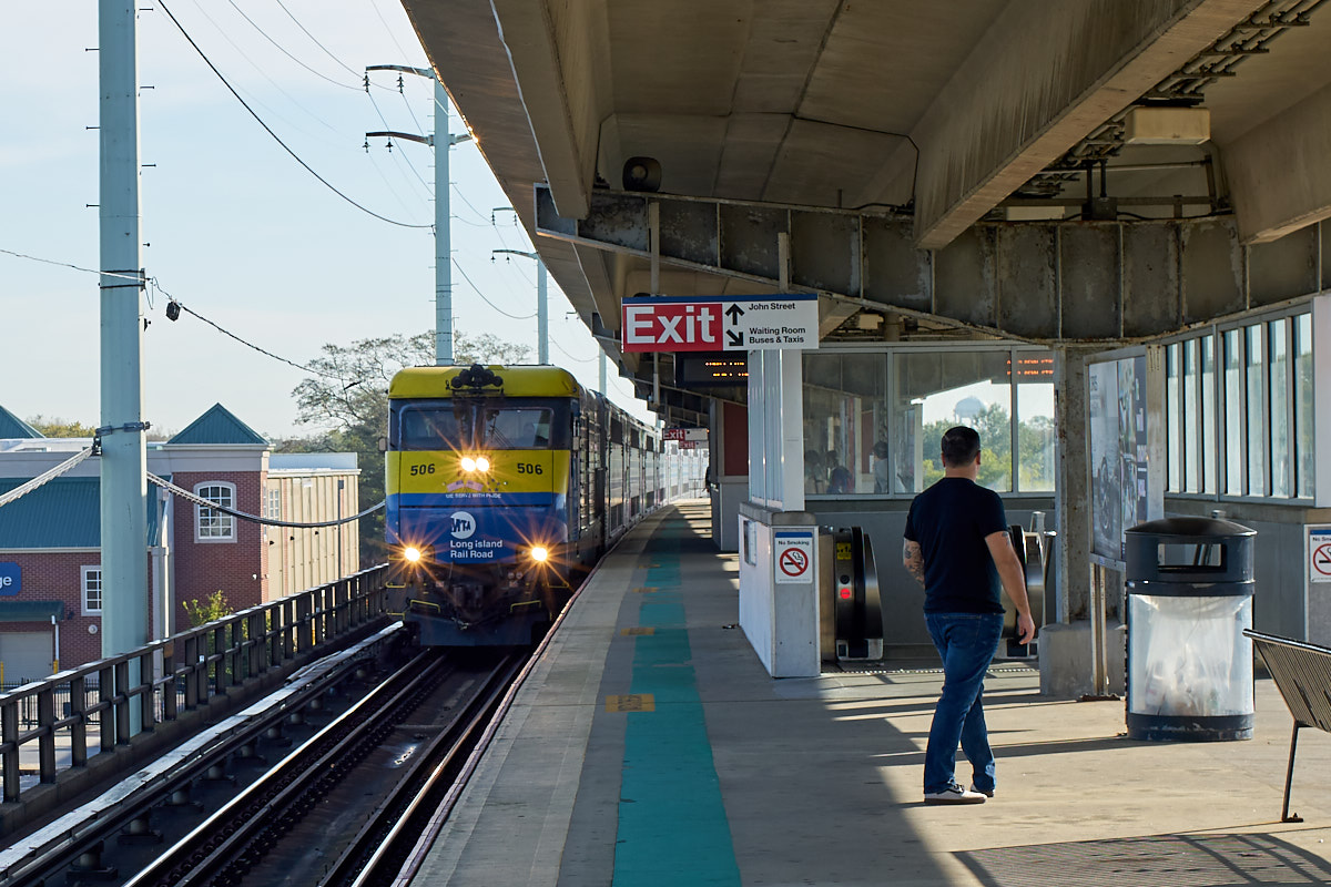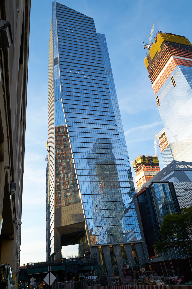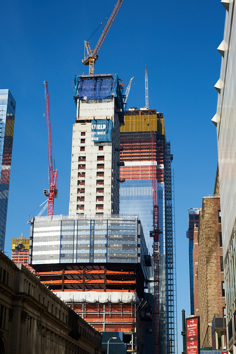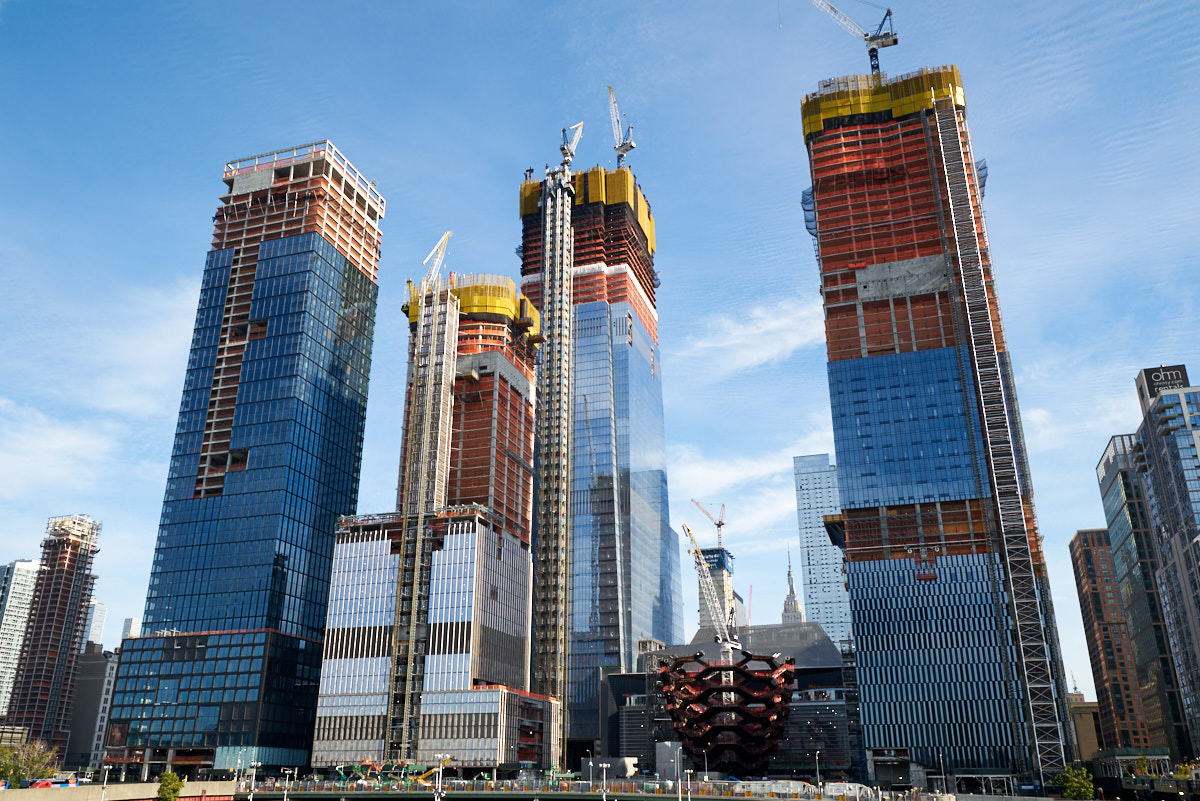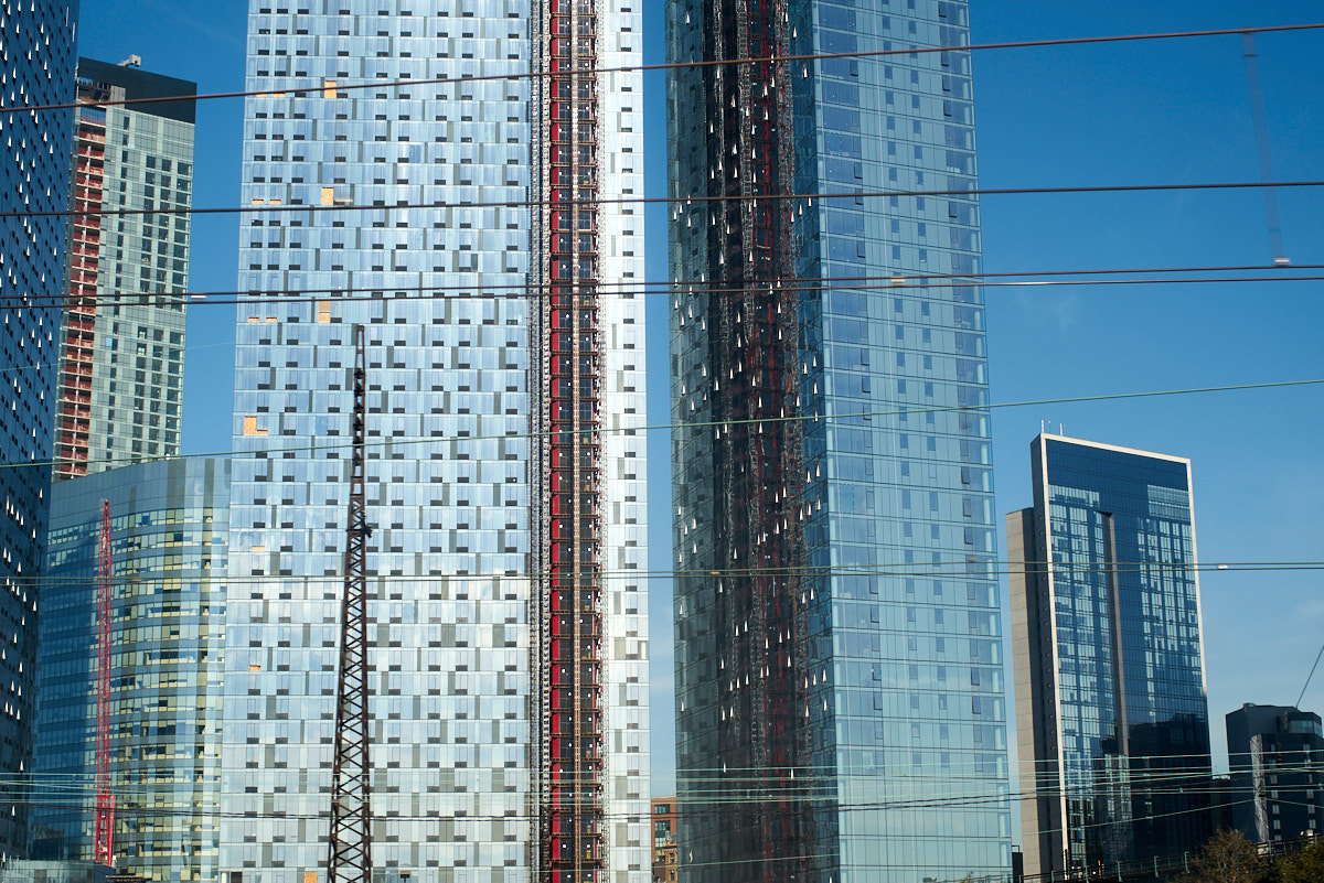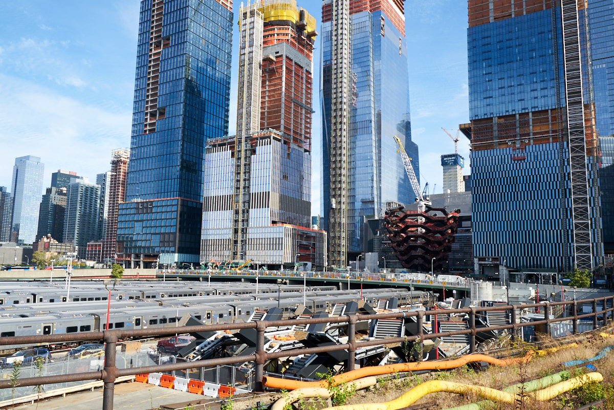 Also visible are Hudson Yards where the LIRR rolling stock is