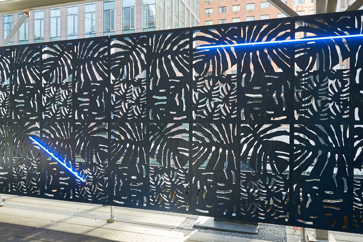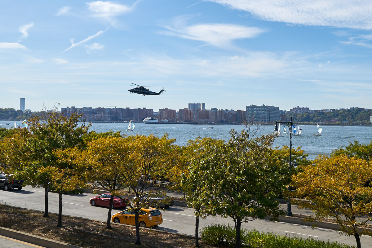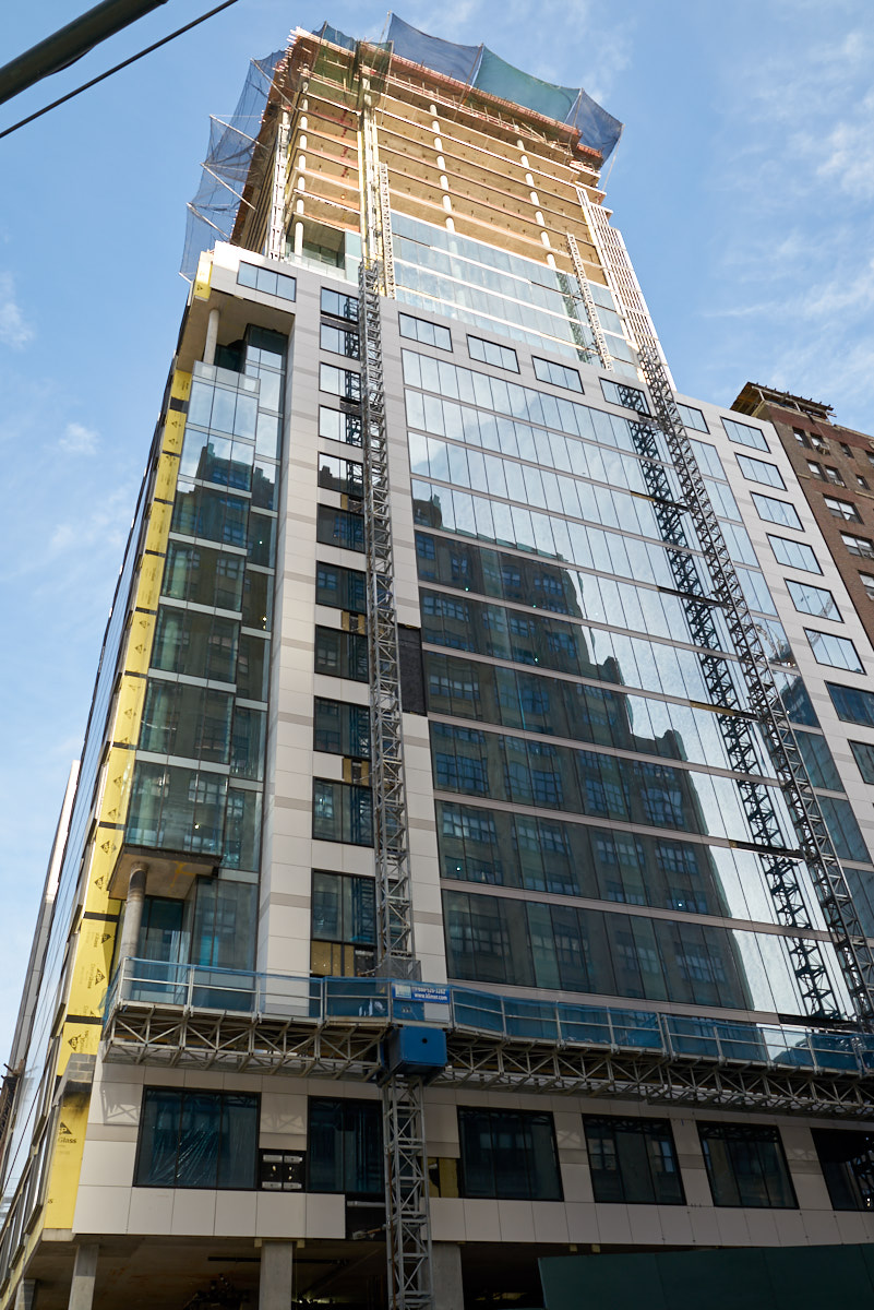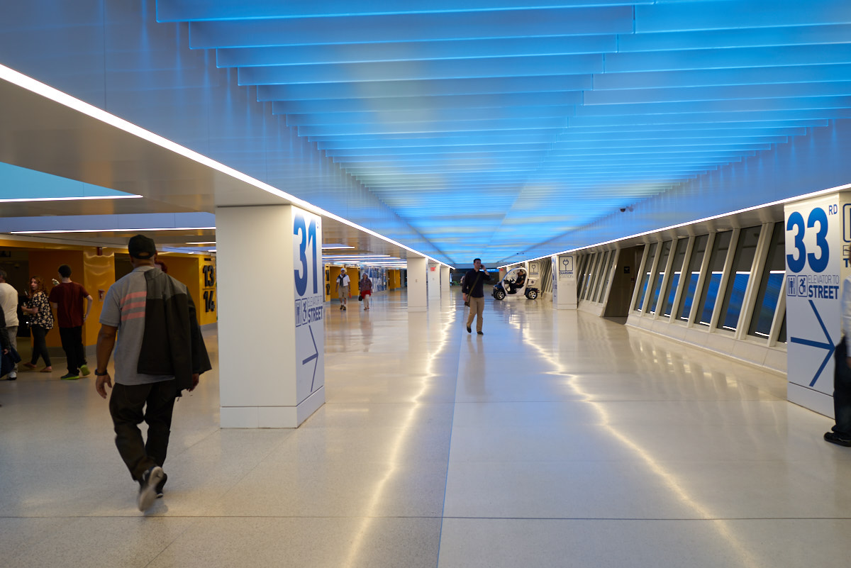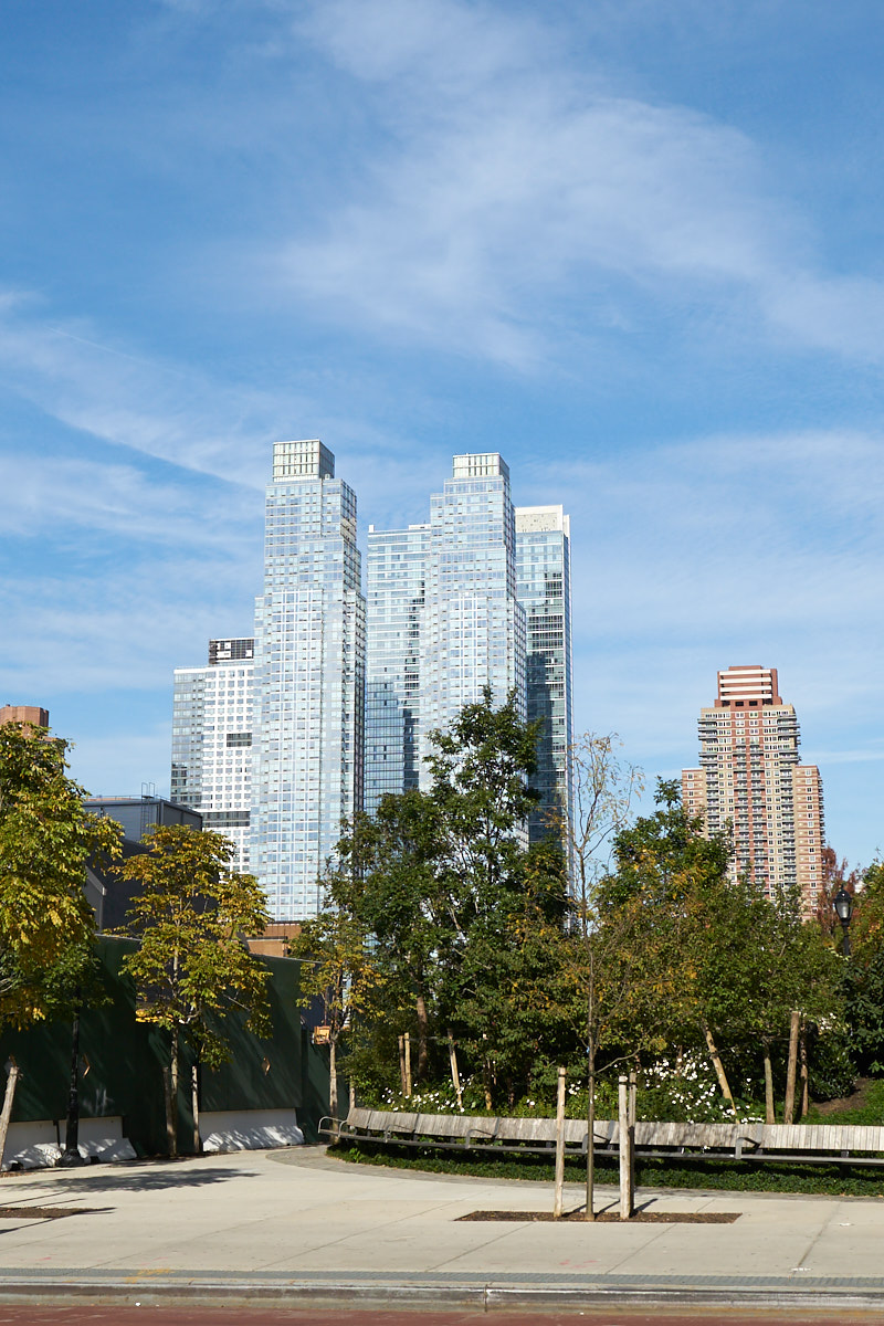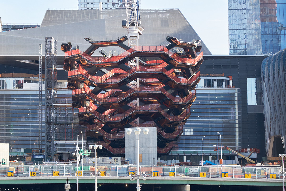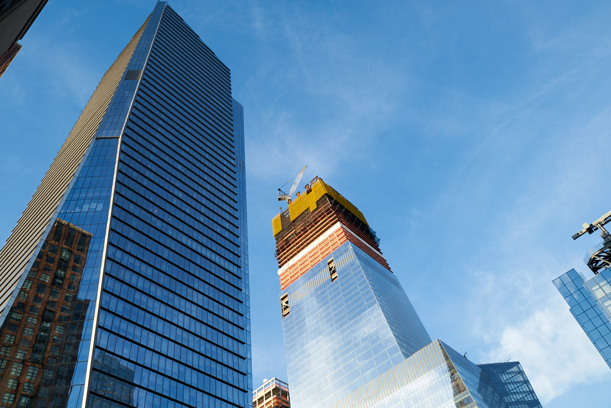 Also visible are Hudson Yards where the LIRR rolling stock is