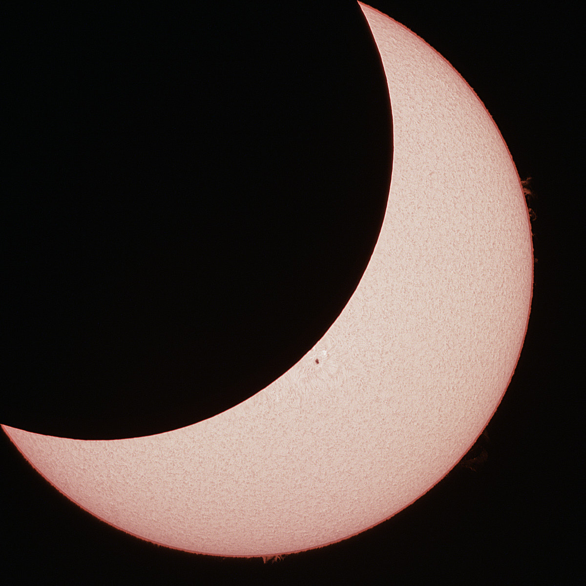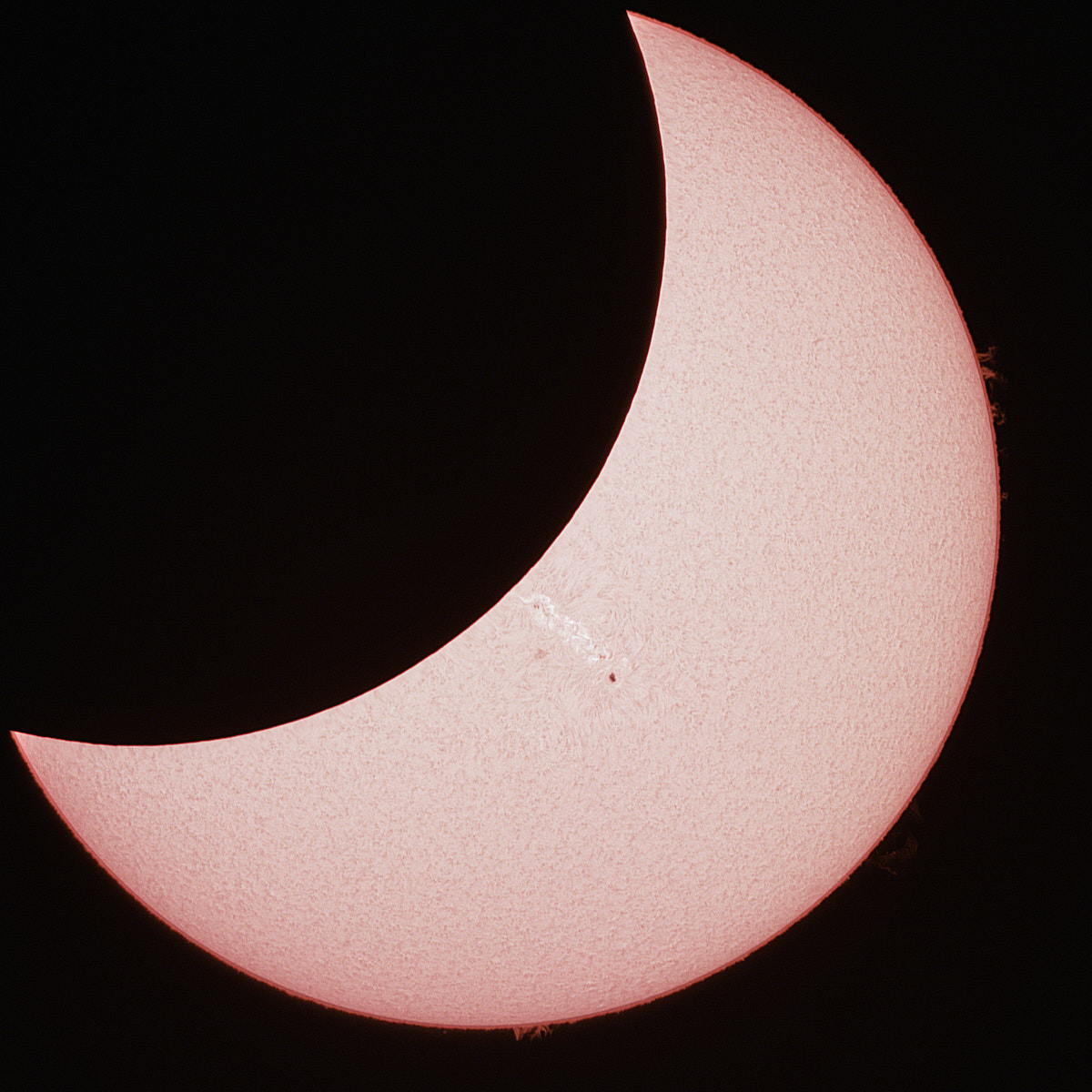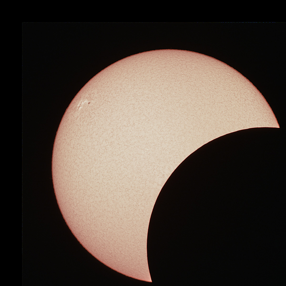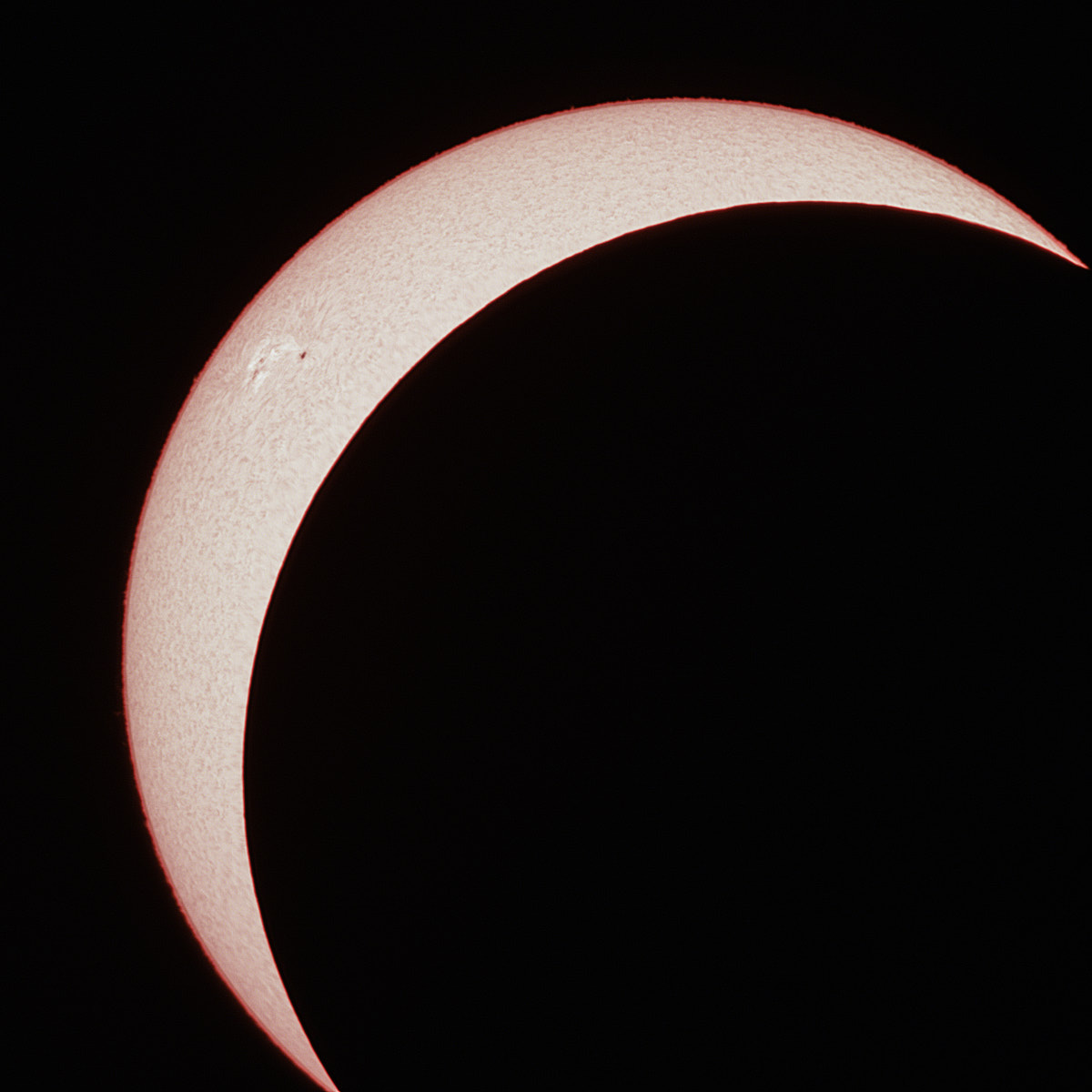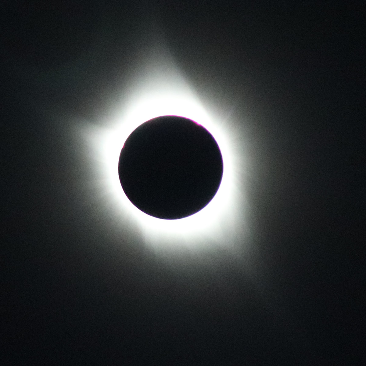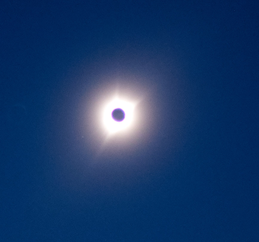 The photo above came out of Kathleen's Fujifilm X-Pro2 with a 23mm lens. The camera takes great photos, but 23mm is just way too short, but it DID get a photo of totality. Note the purple fringe which is a great example of chromatic aberration present in most lenses.