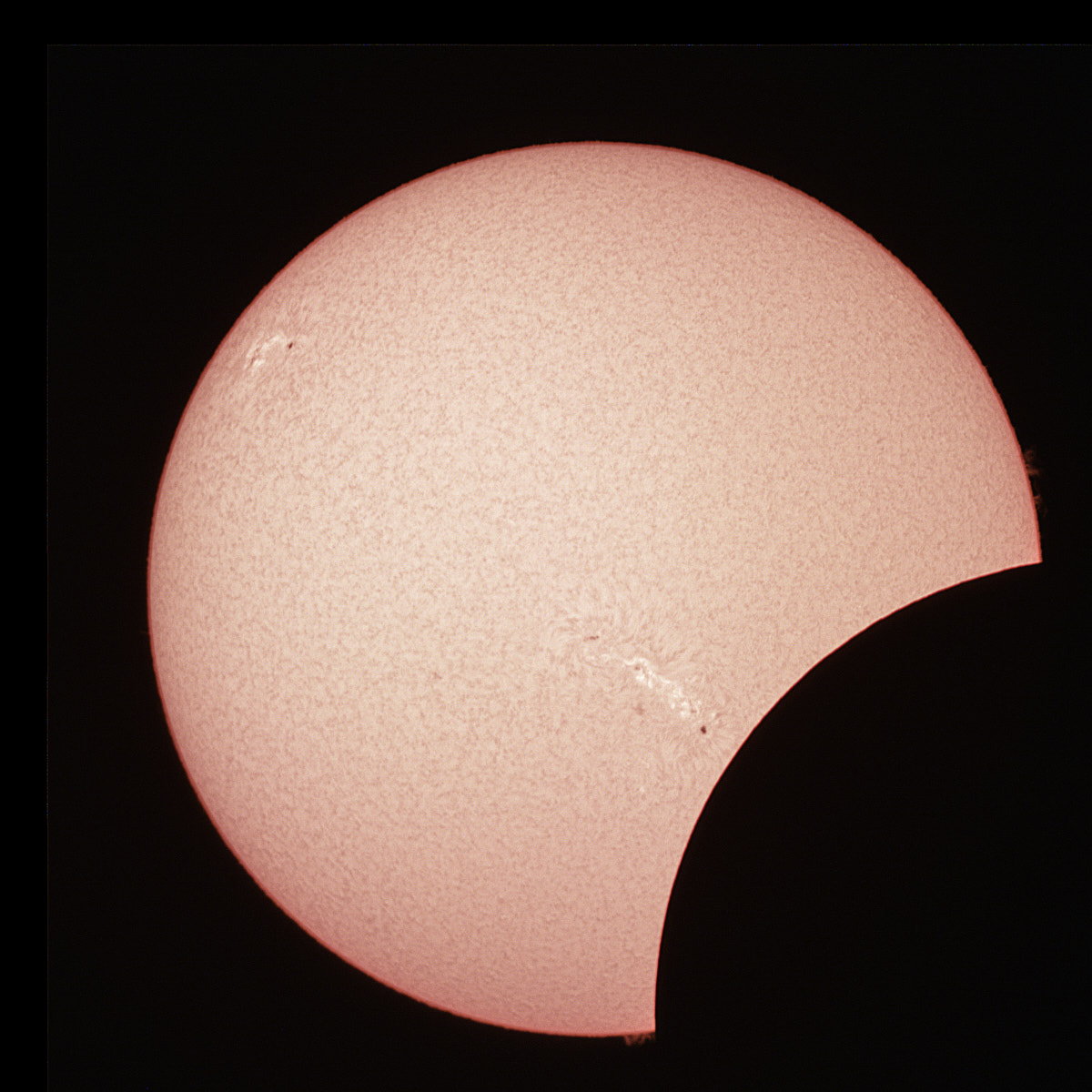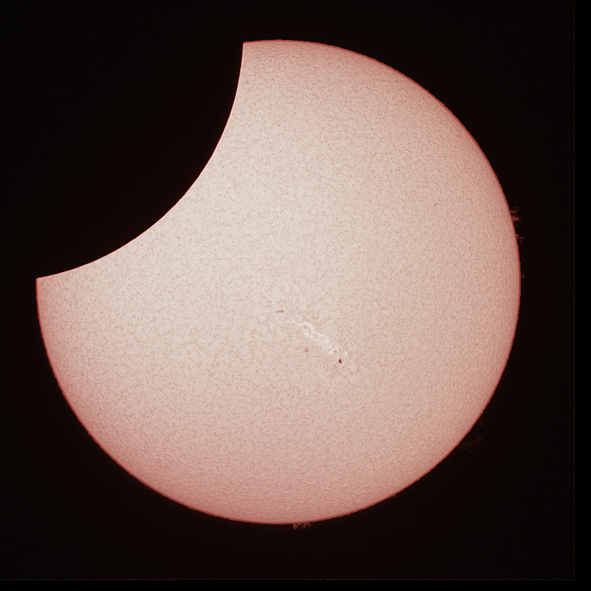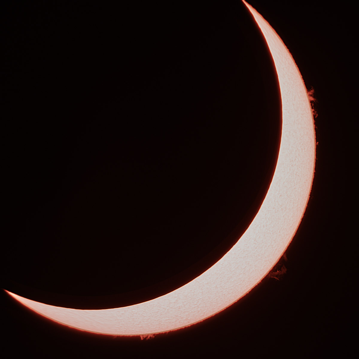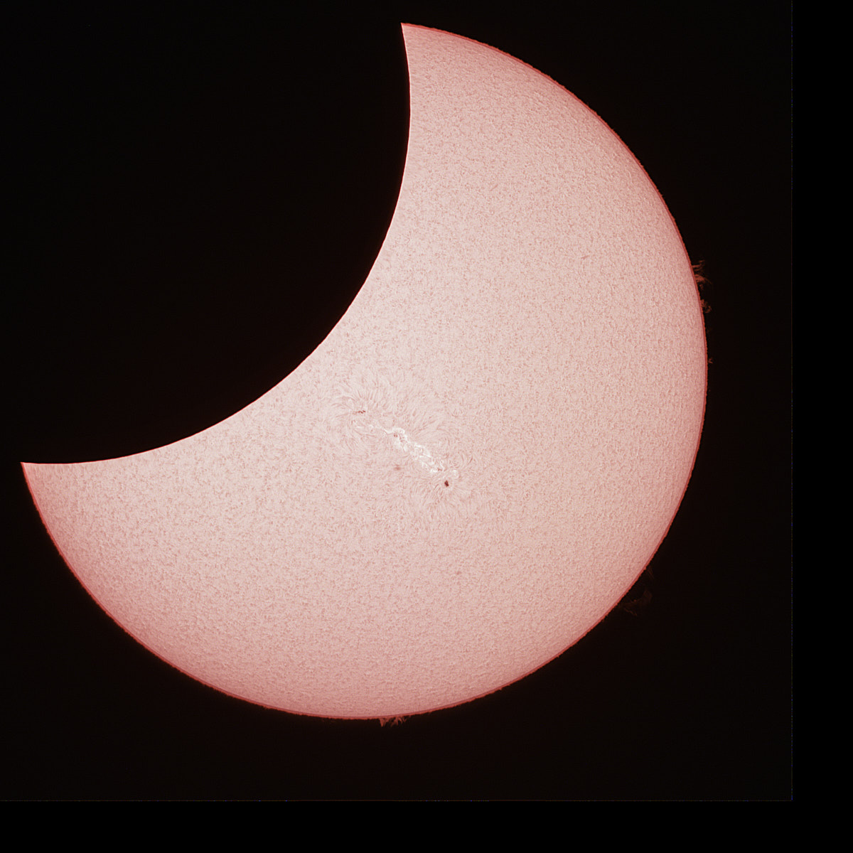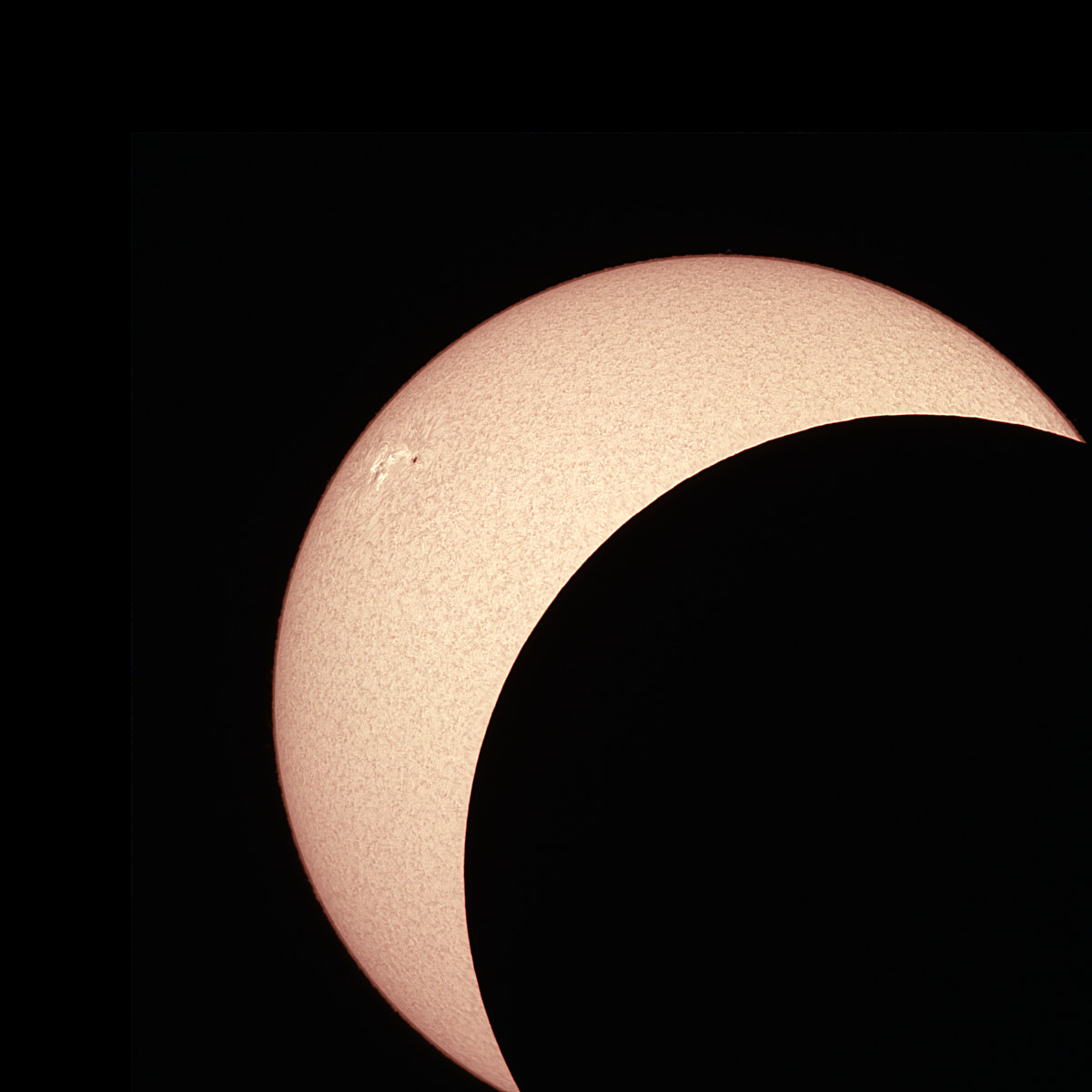 The photo above came out of Kathleen's Fujifilm X-Pro2 with a 23mm lens. The camera takes great photos, but 23mm is just way too short, but it DID get a photo of totality. Note the purple fringe which is a great example of chromatic aberration present in most lenses.