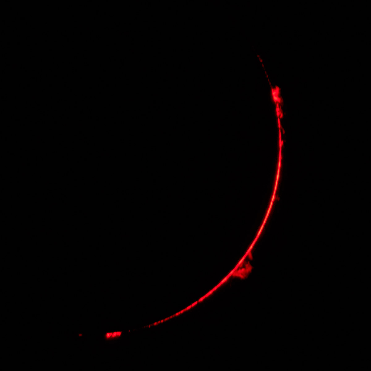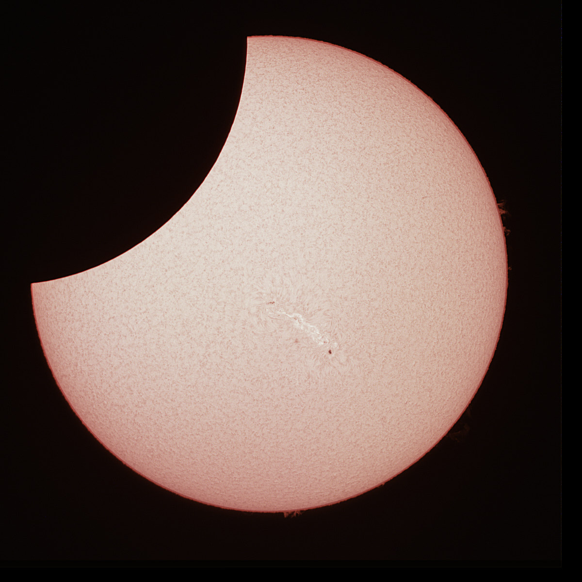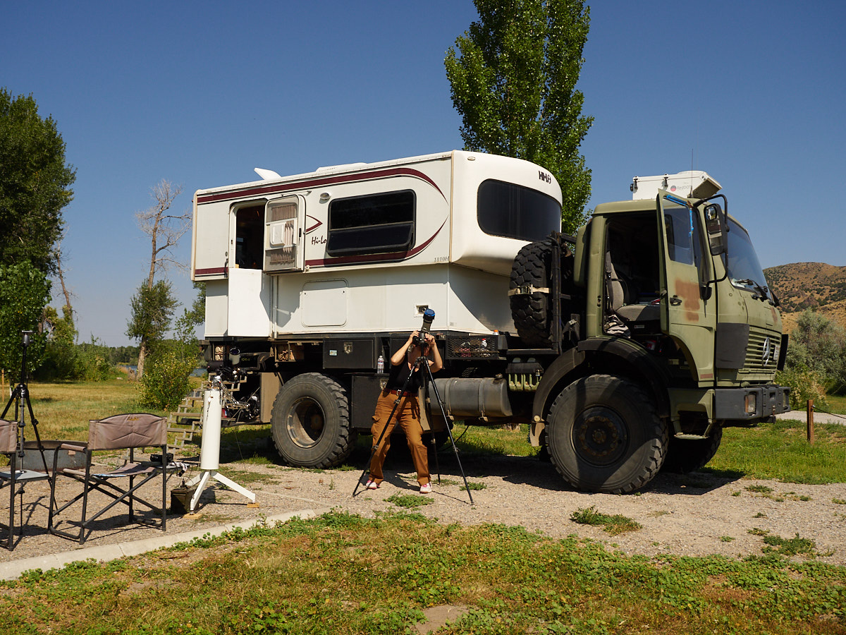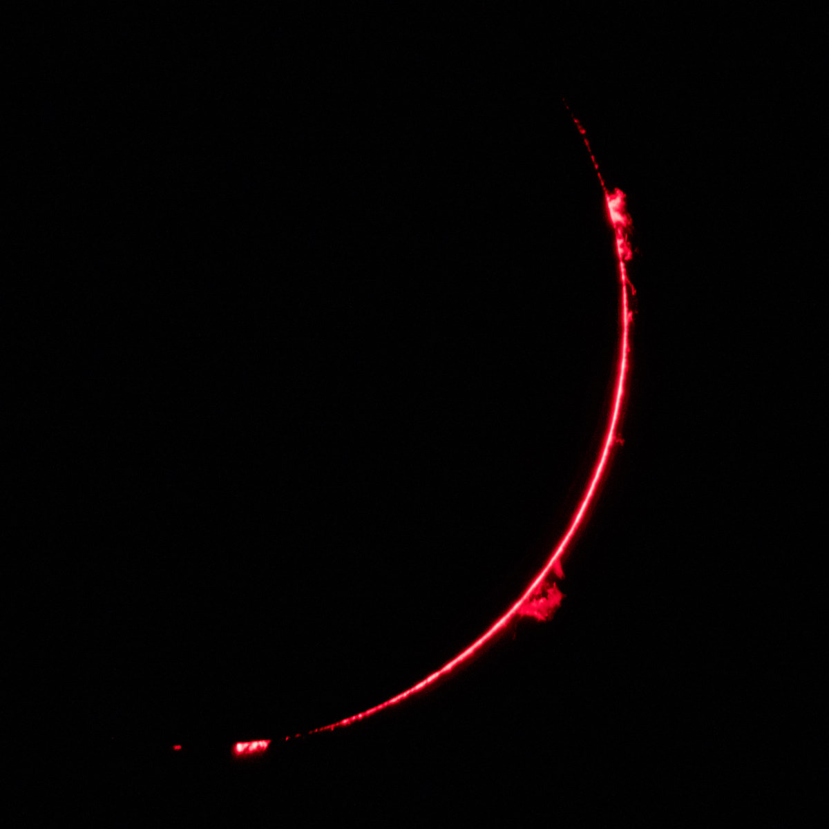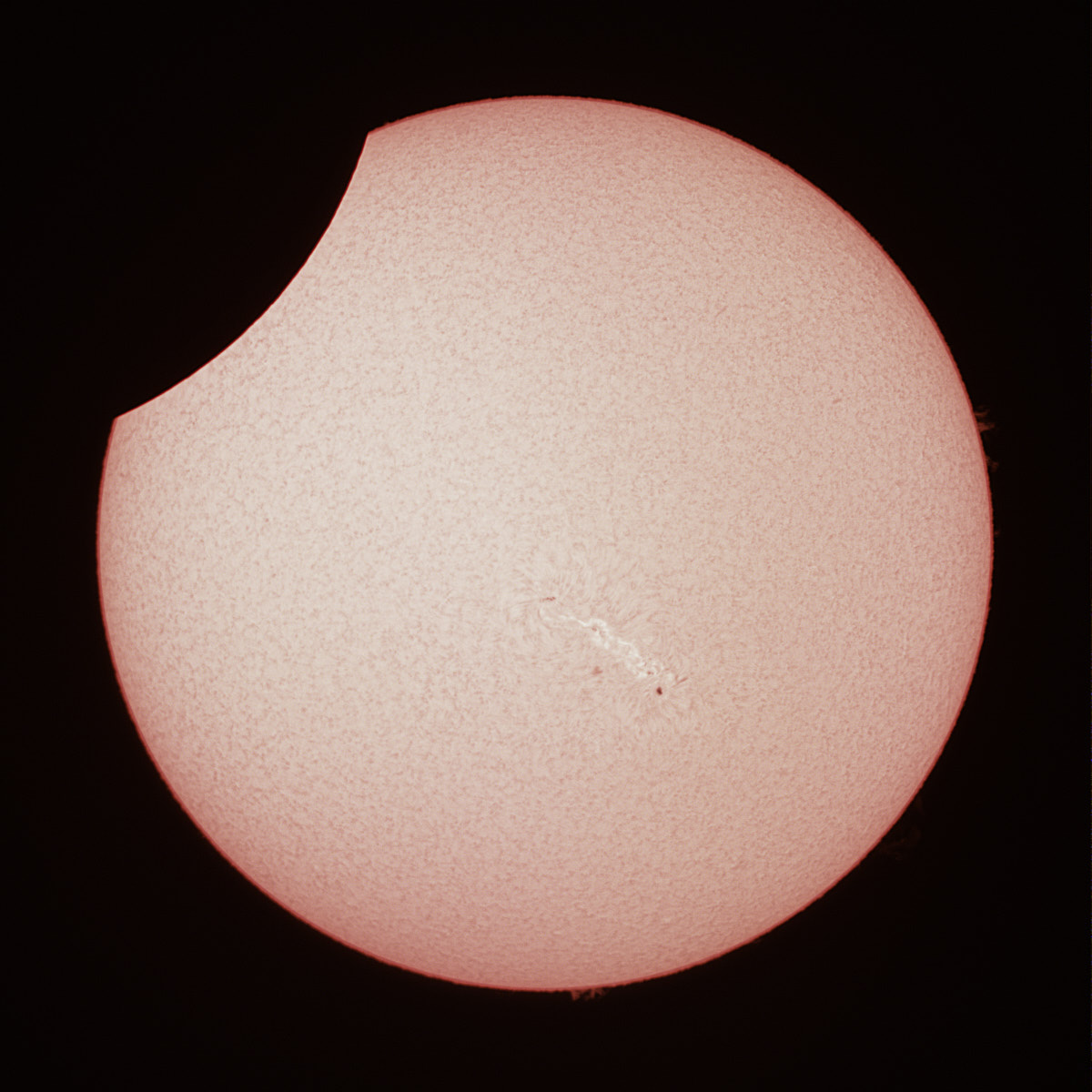 The photo above came out of Kathleen's Fujifilm X-Pro2 with a 23mm lens. The camera takes great photos, but 23mm is just way too short, but it DID get a photo of totality. Note the purple fringe which is a great example of chromatic aberration present in most lenses.