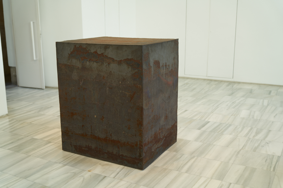 chuck of iron cut into a cube. Not "cubist" art per se,