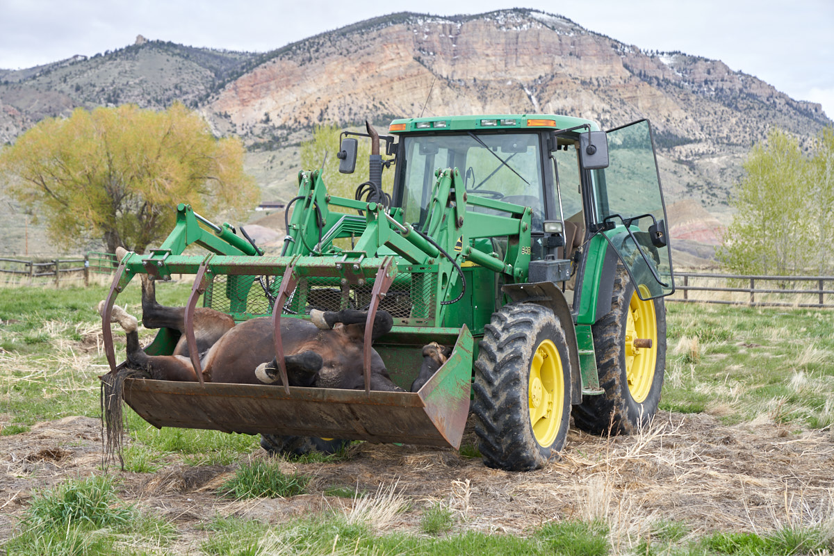 of. The rancher's loader was used to transport the carcass
