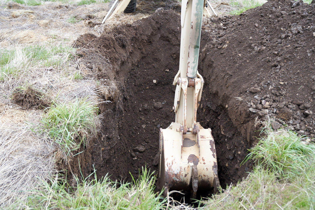 backhoe was retracted and the bucket was used to scrape the soil