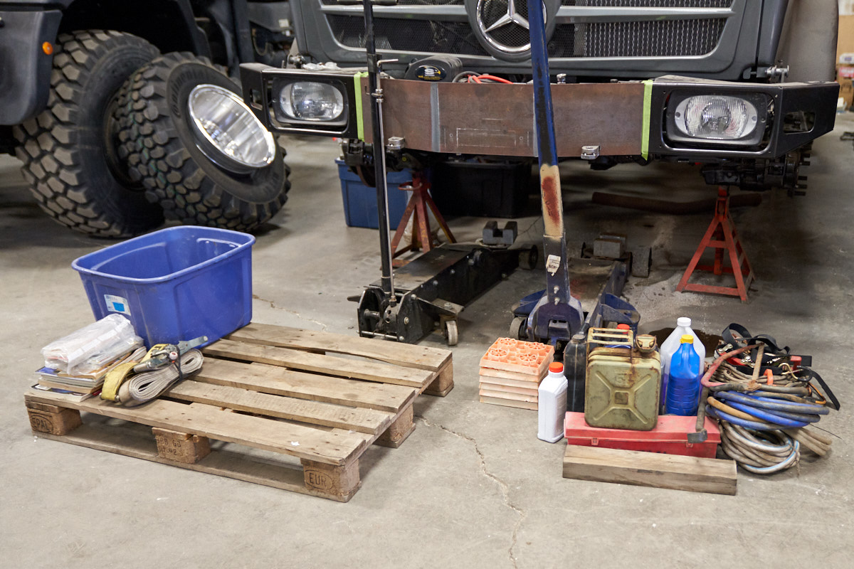 the HiLo's tool boxes. We obtained a pallet and started
