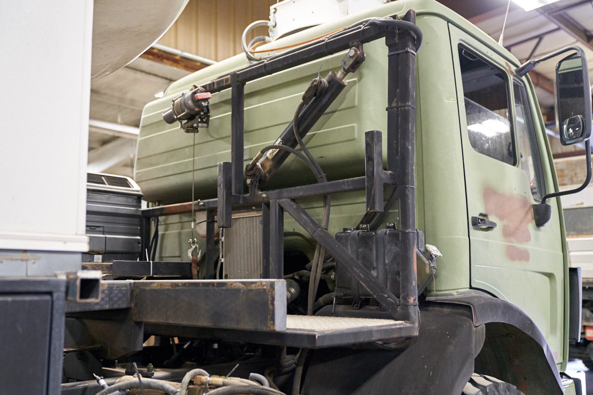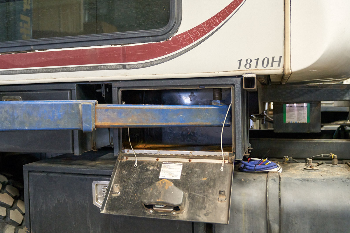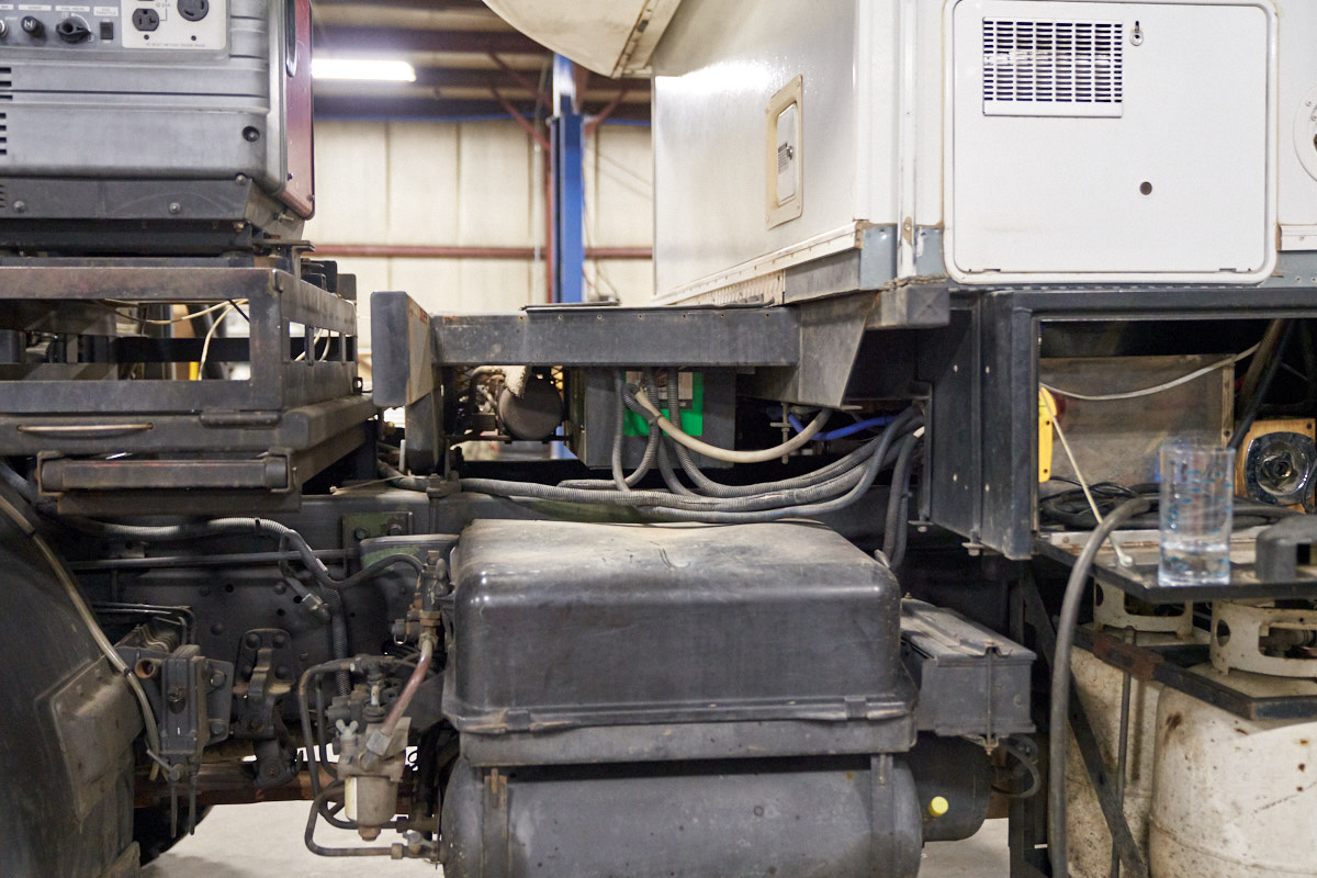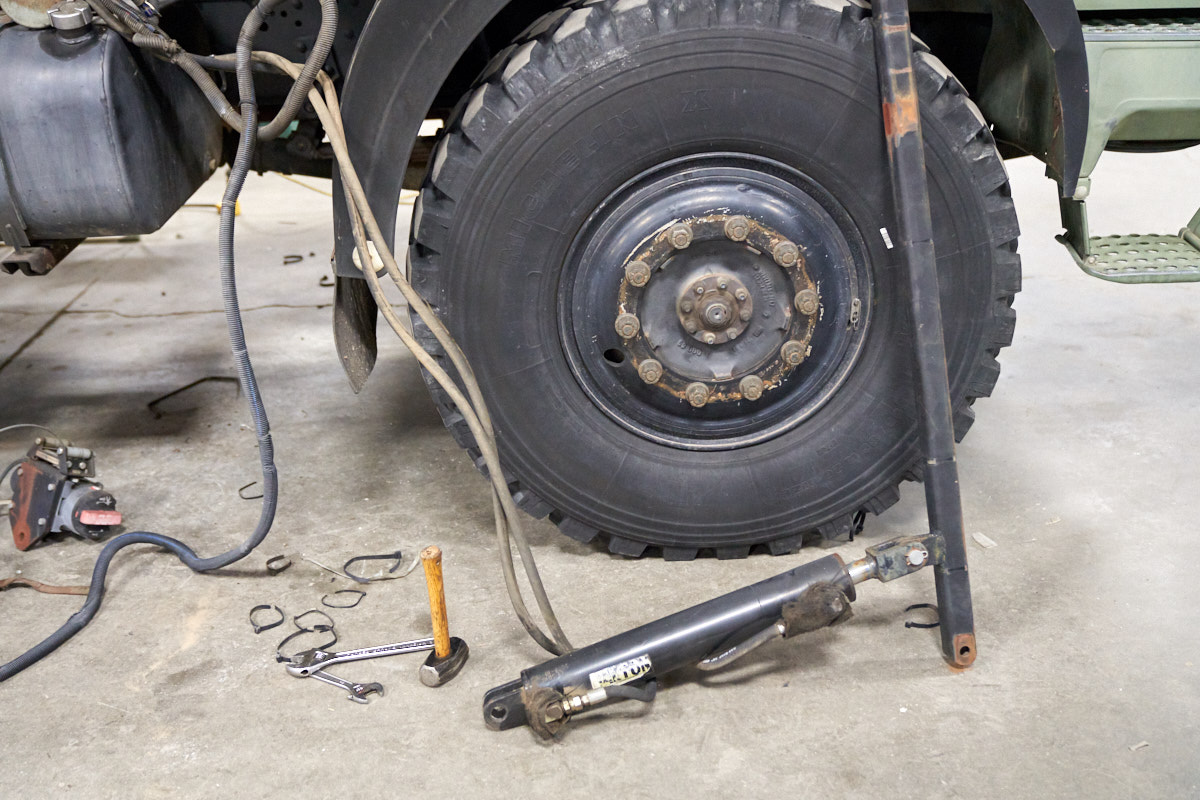 the spare tire, tire crane winch and hydraulic system.