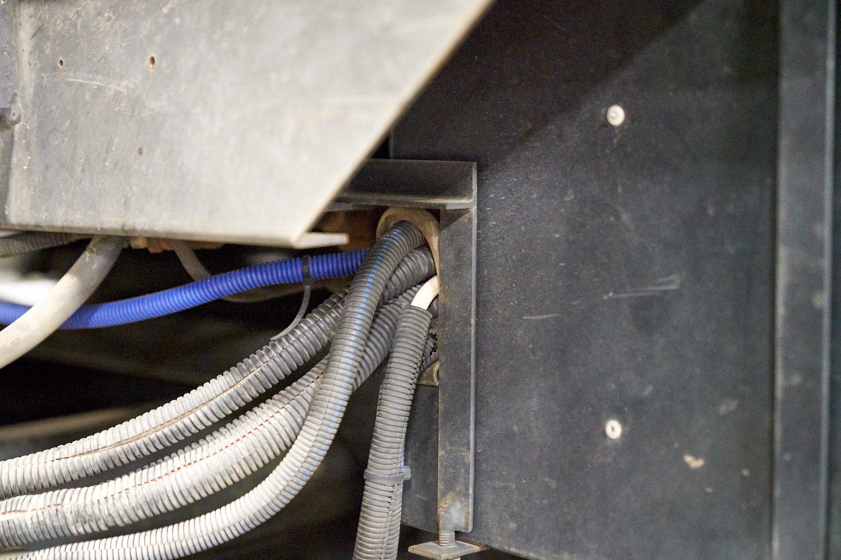 the large bundle of loomed cables coming from the electrical