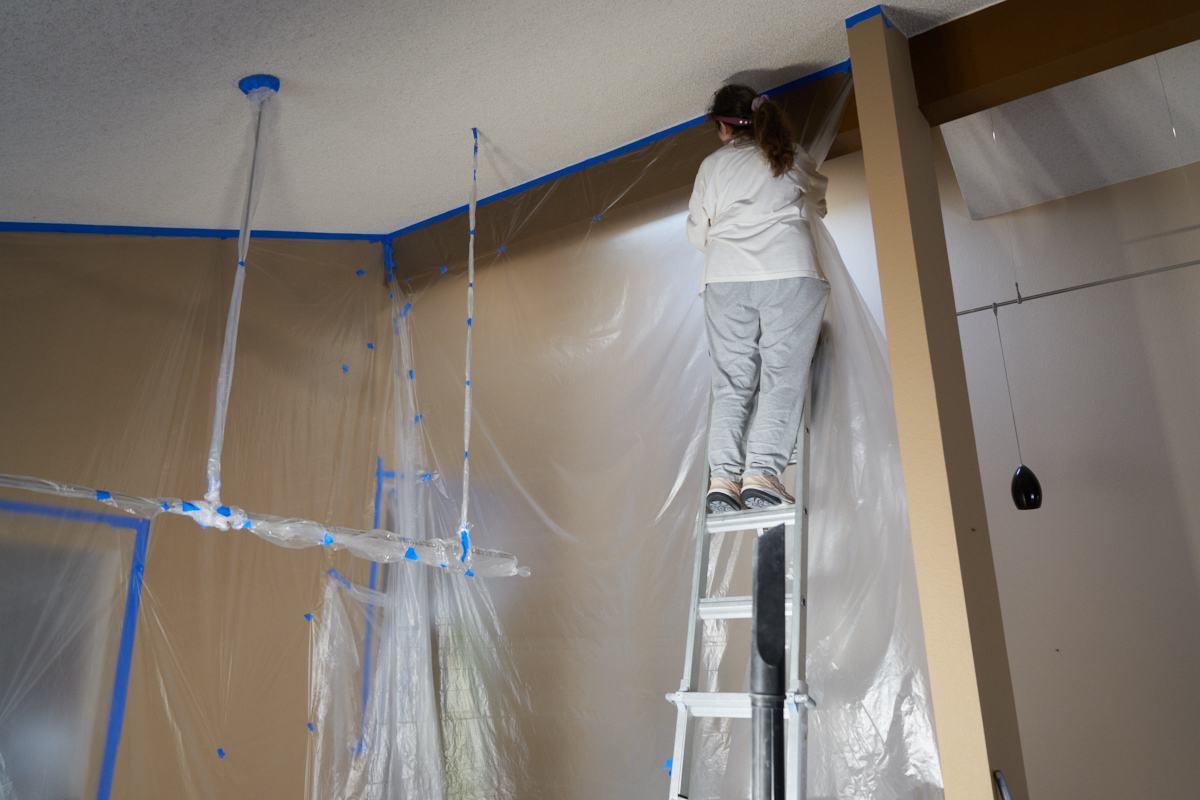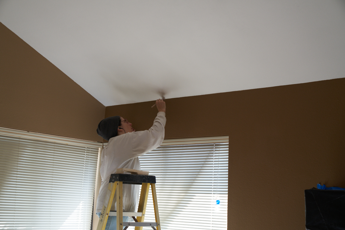 above, we have vaulted ceilings so being high on the ladder was