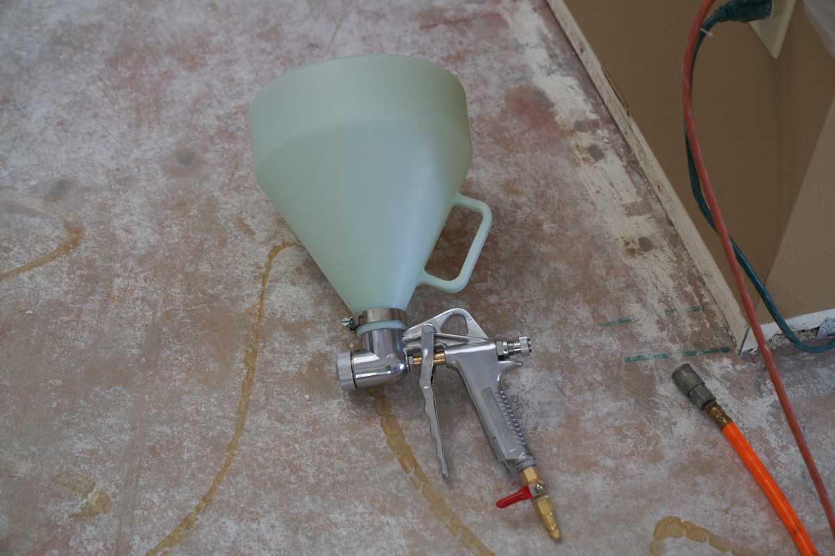were ready to apply the drywall texture. Above, the bare