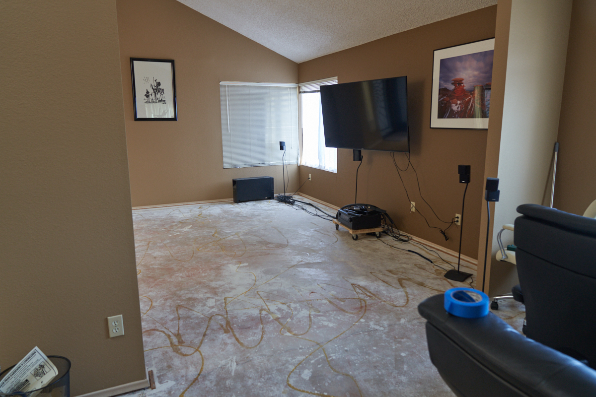 we could scrape the popcorn, we demo'ed the flooring.