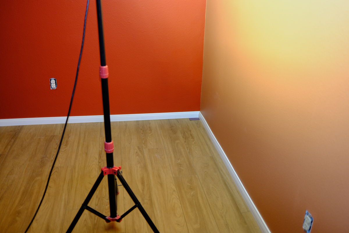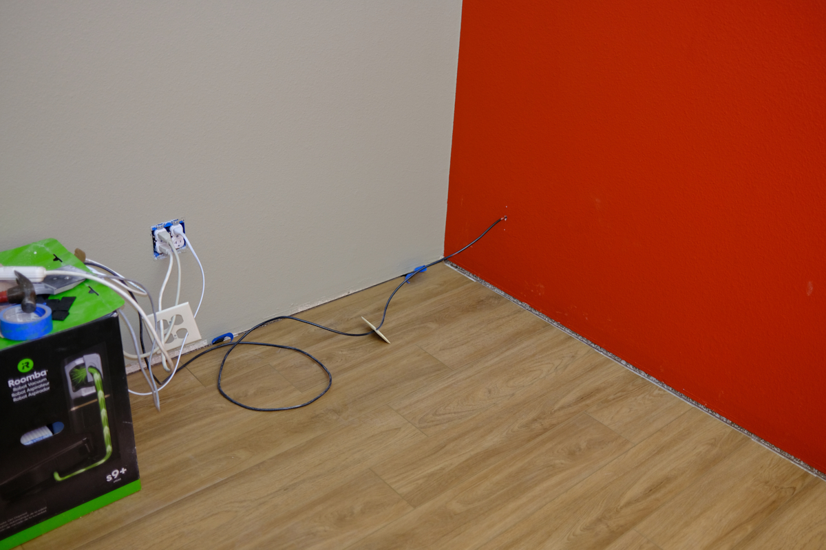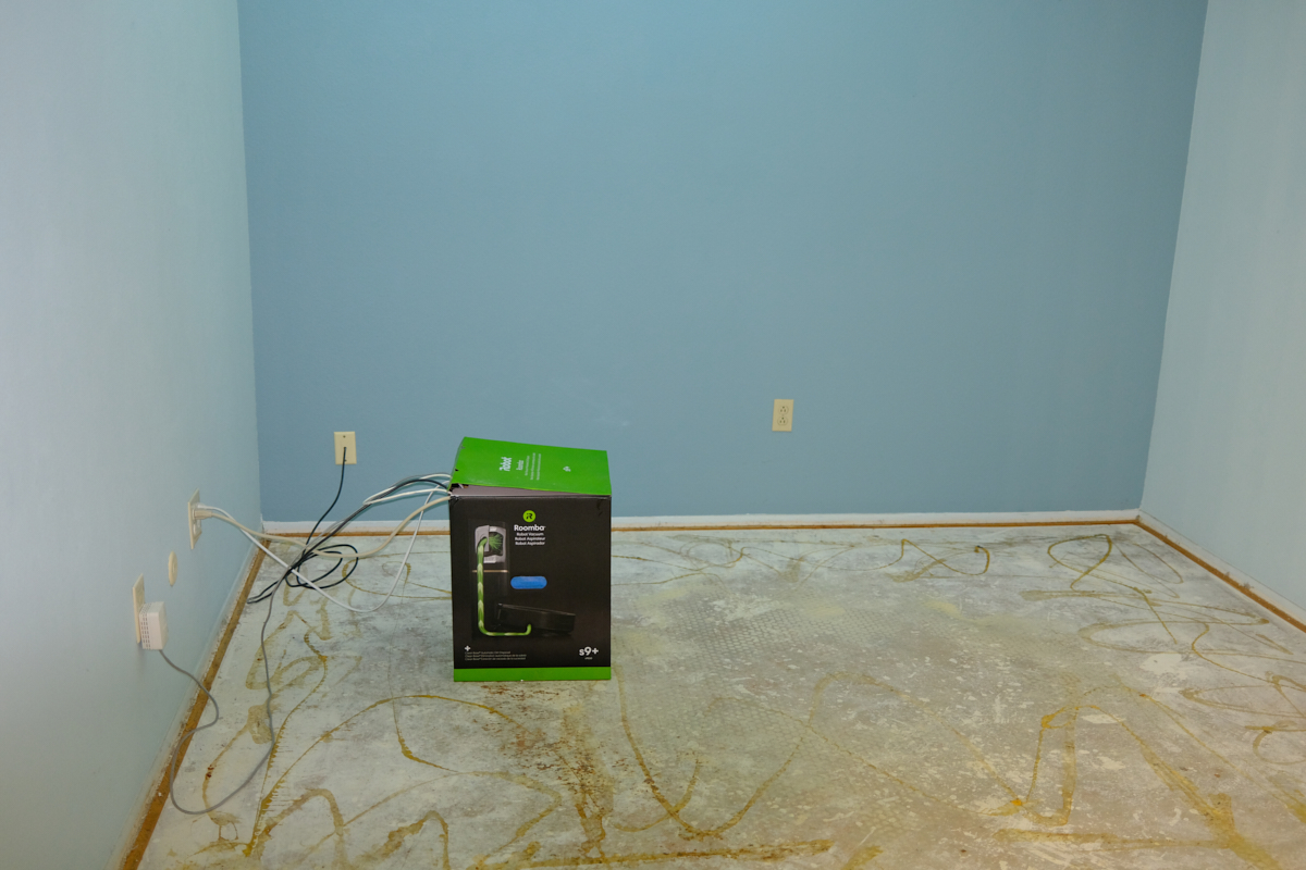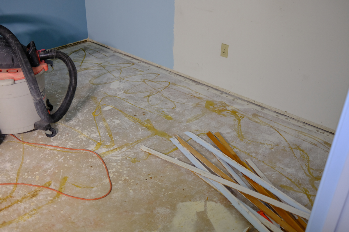 revealing bare concrete, albeit with glue, paint and drywall mud