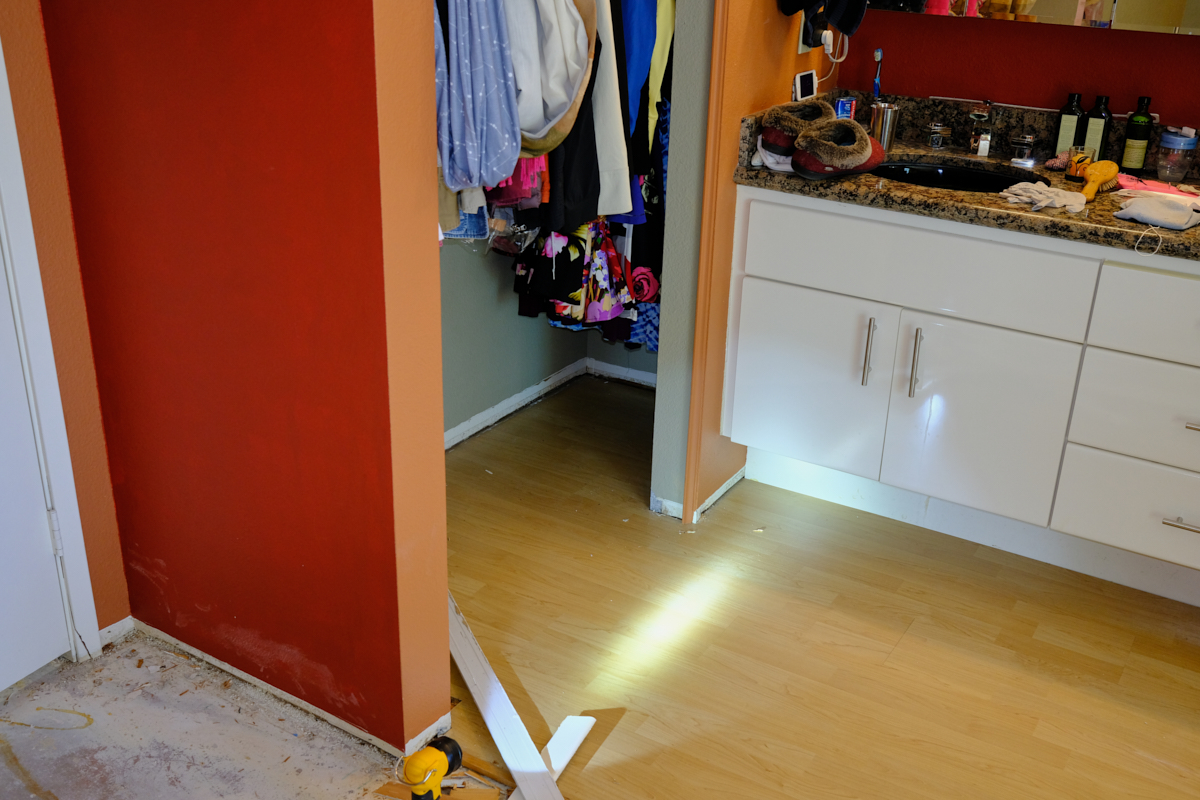 transition between the bedroom and sink area was removed.