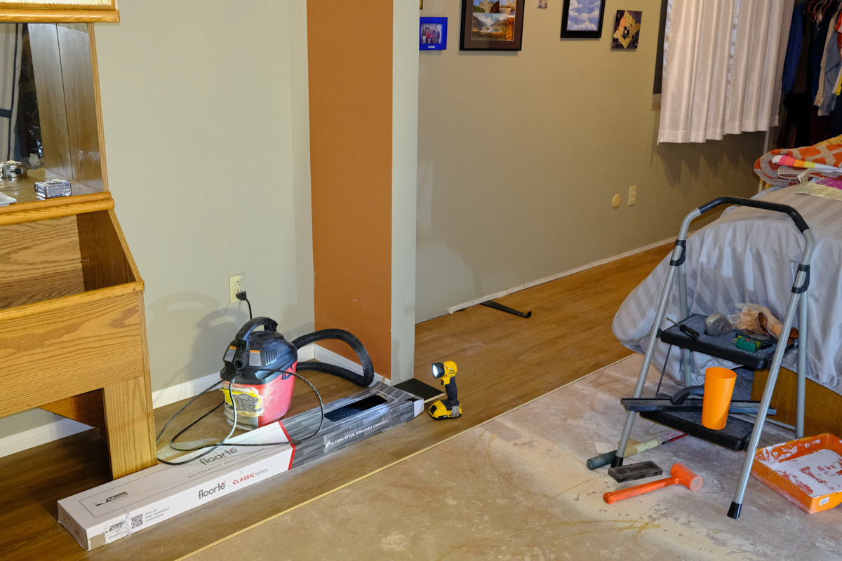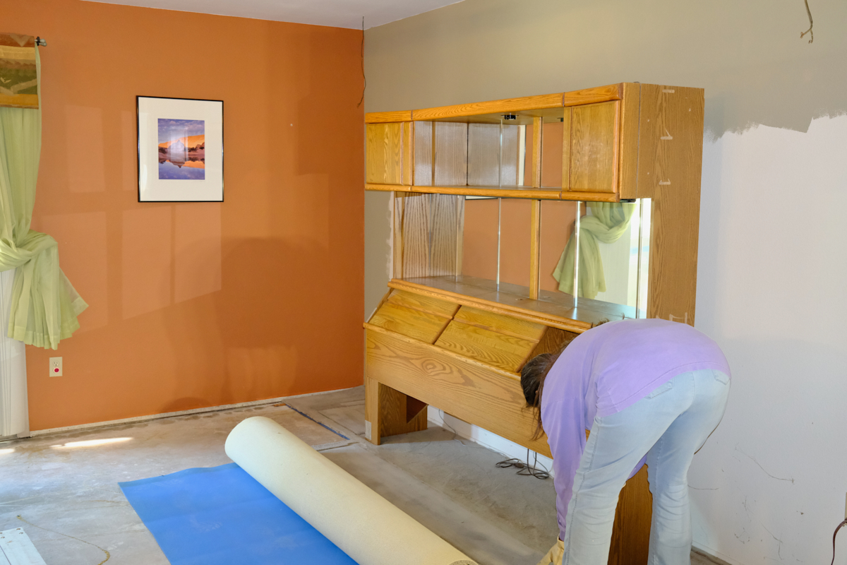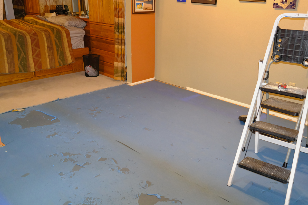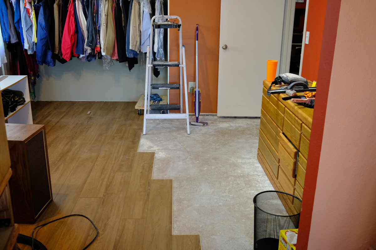 the workout room floor was scraped and the closet painted, the