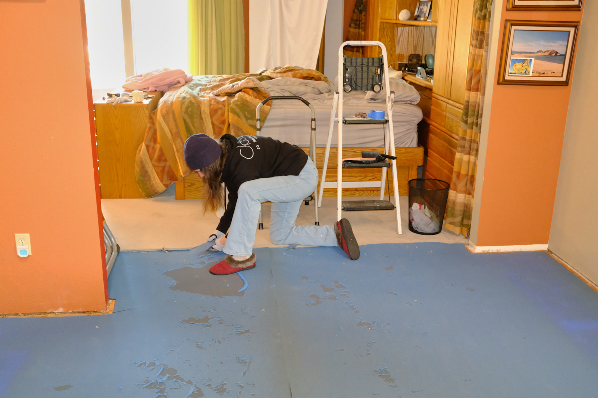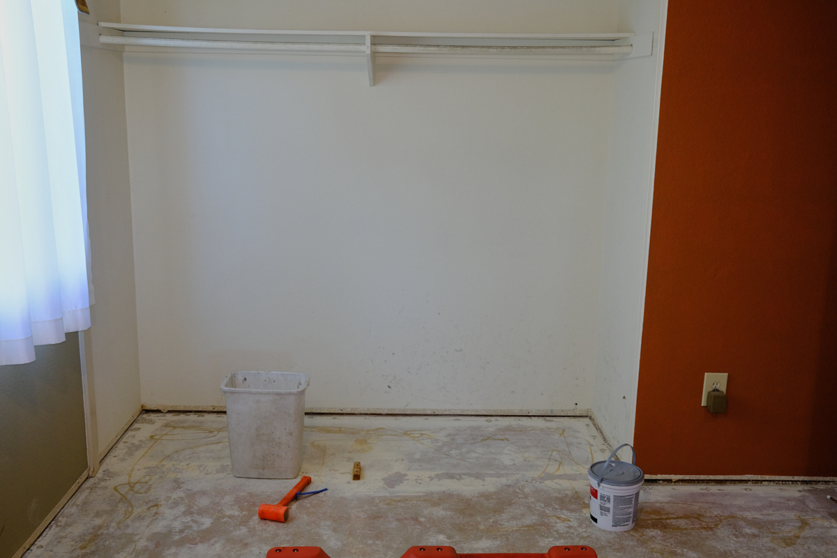 carpet in Kathleen's (converted hallway) closet was removed