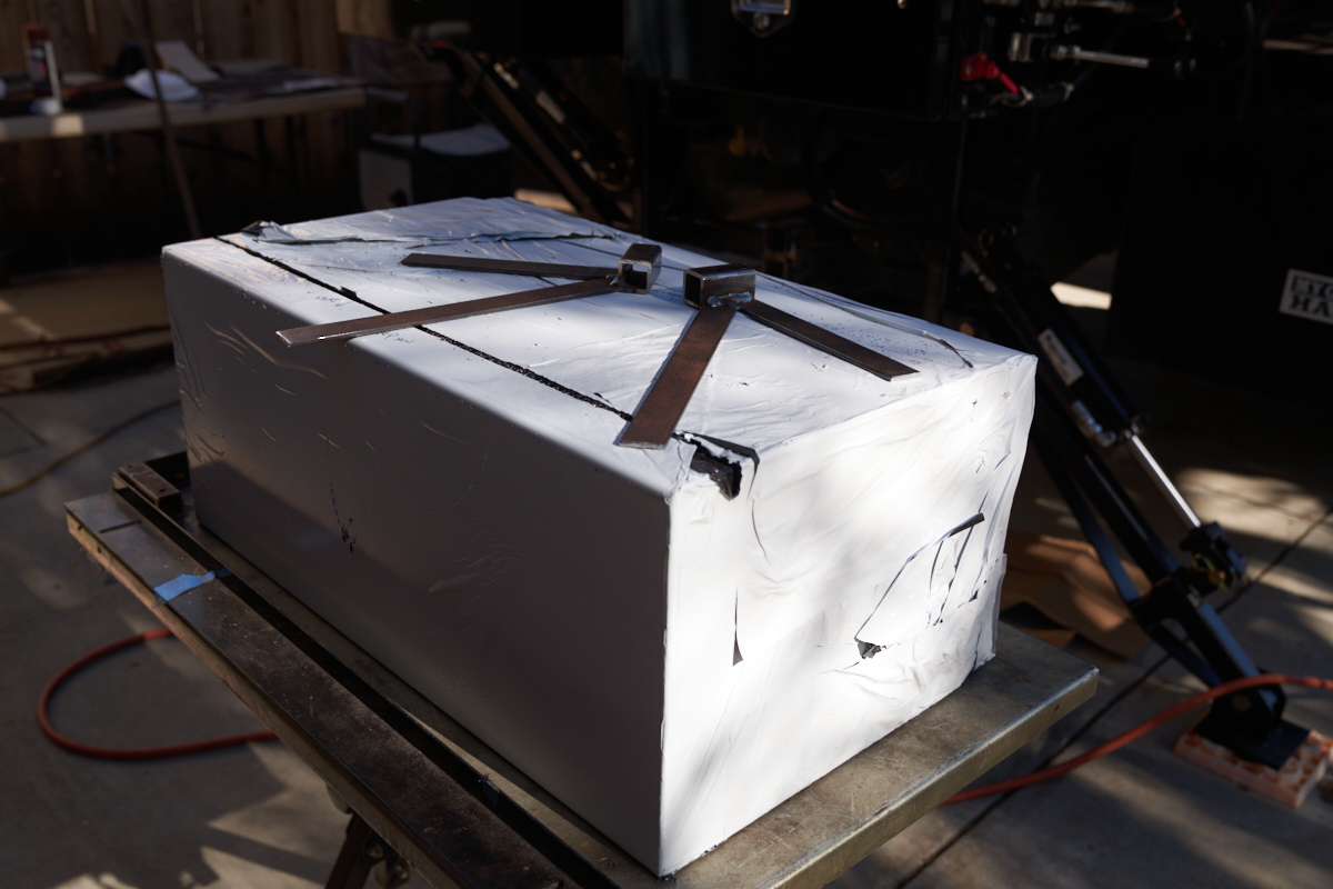 The next box was cut and stand-offs were welded on. Note