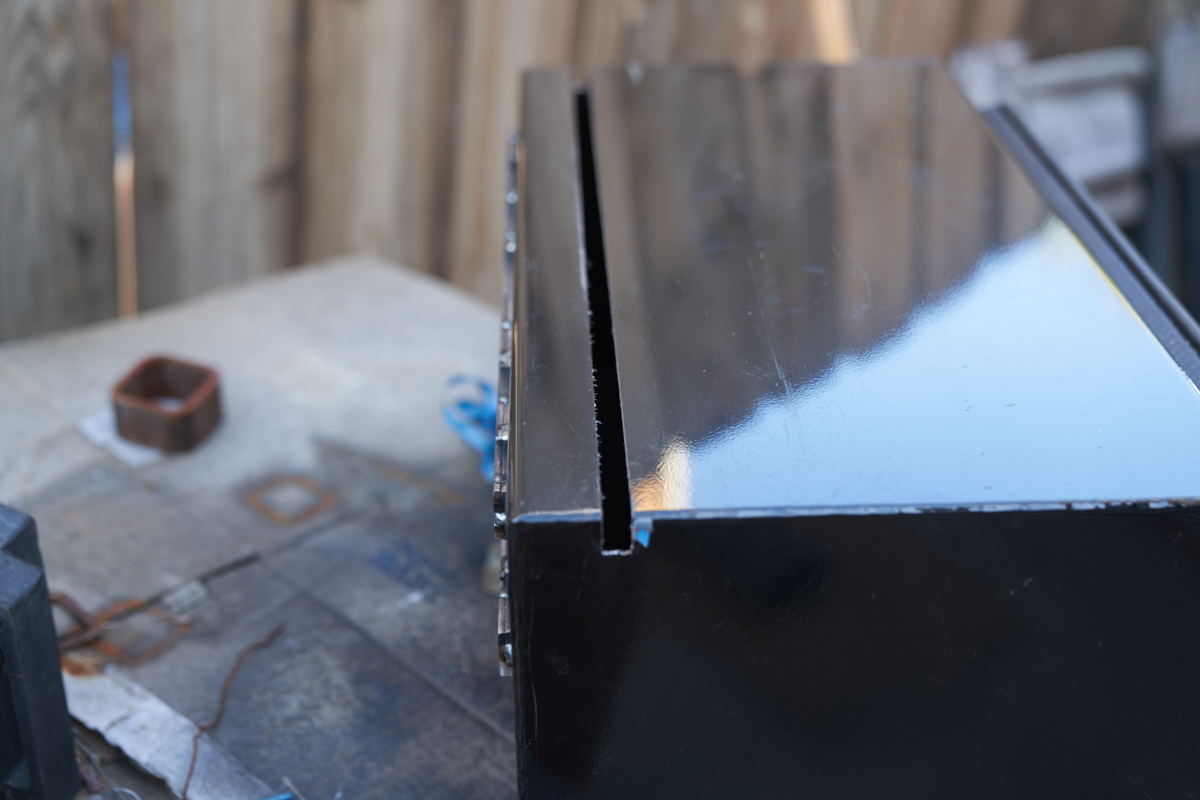 The slot in the top-rear of the box was cut and left/right