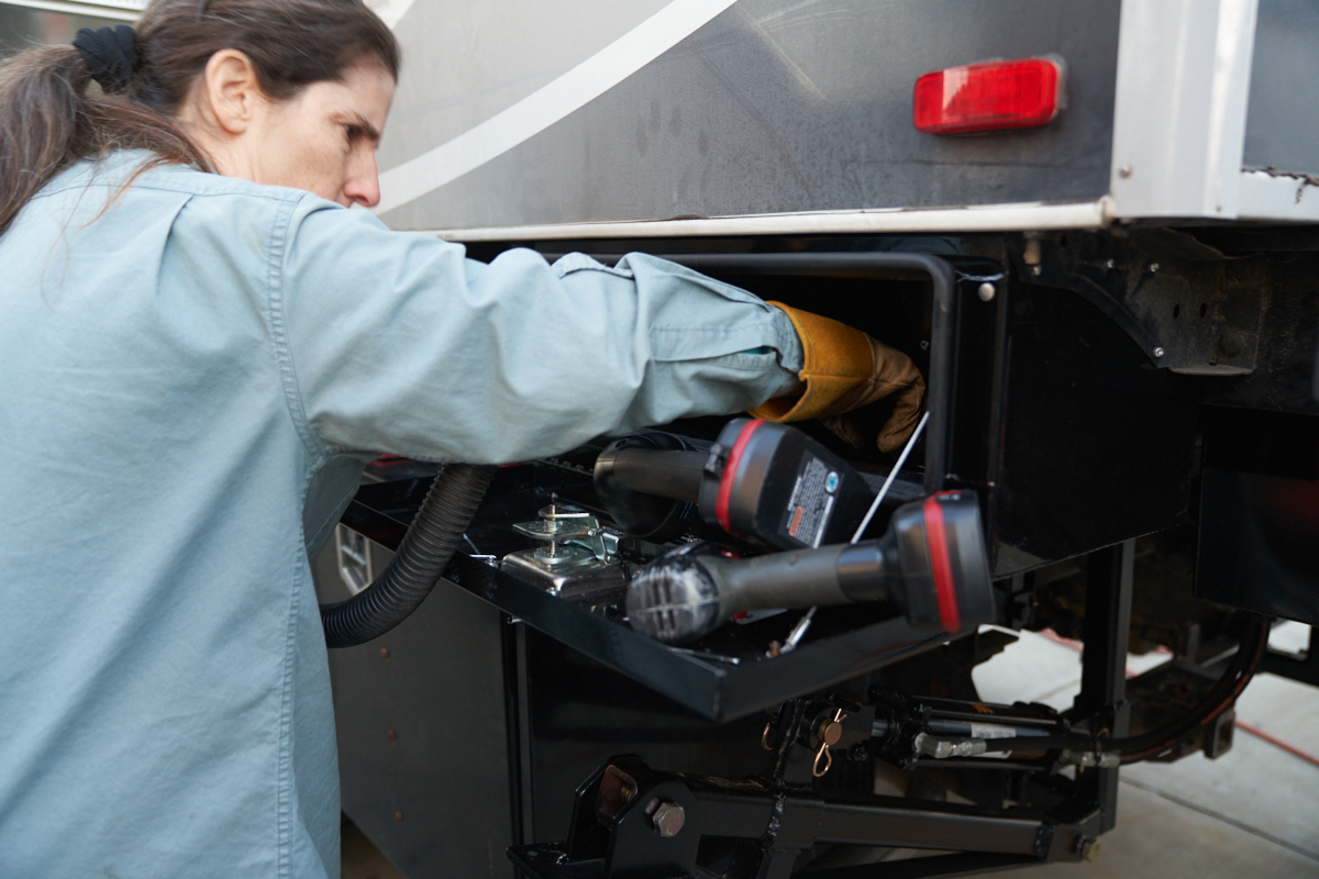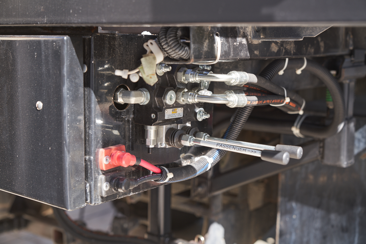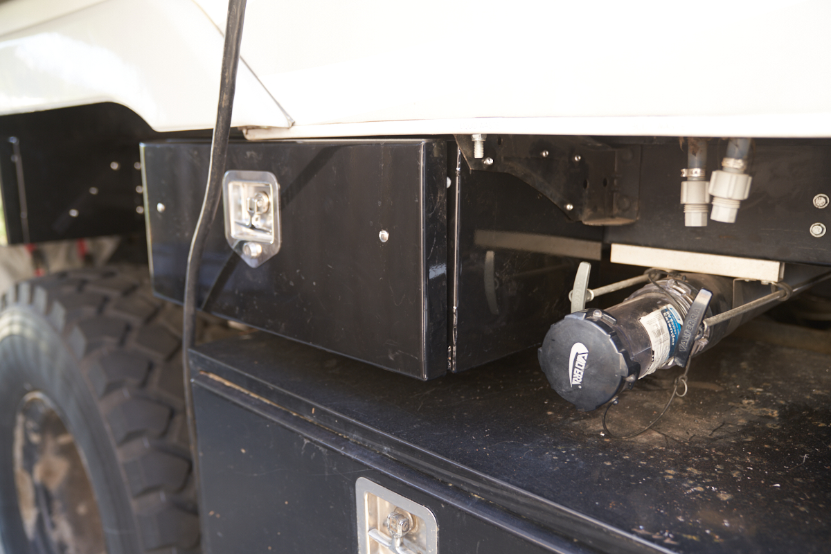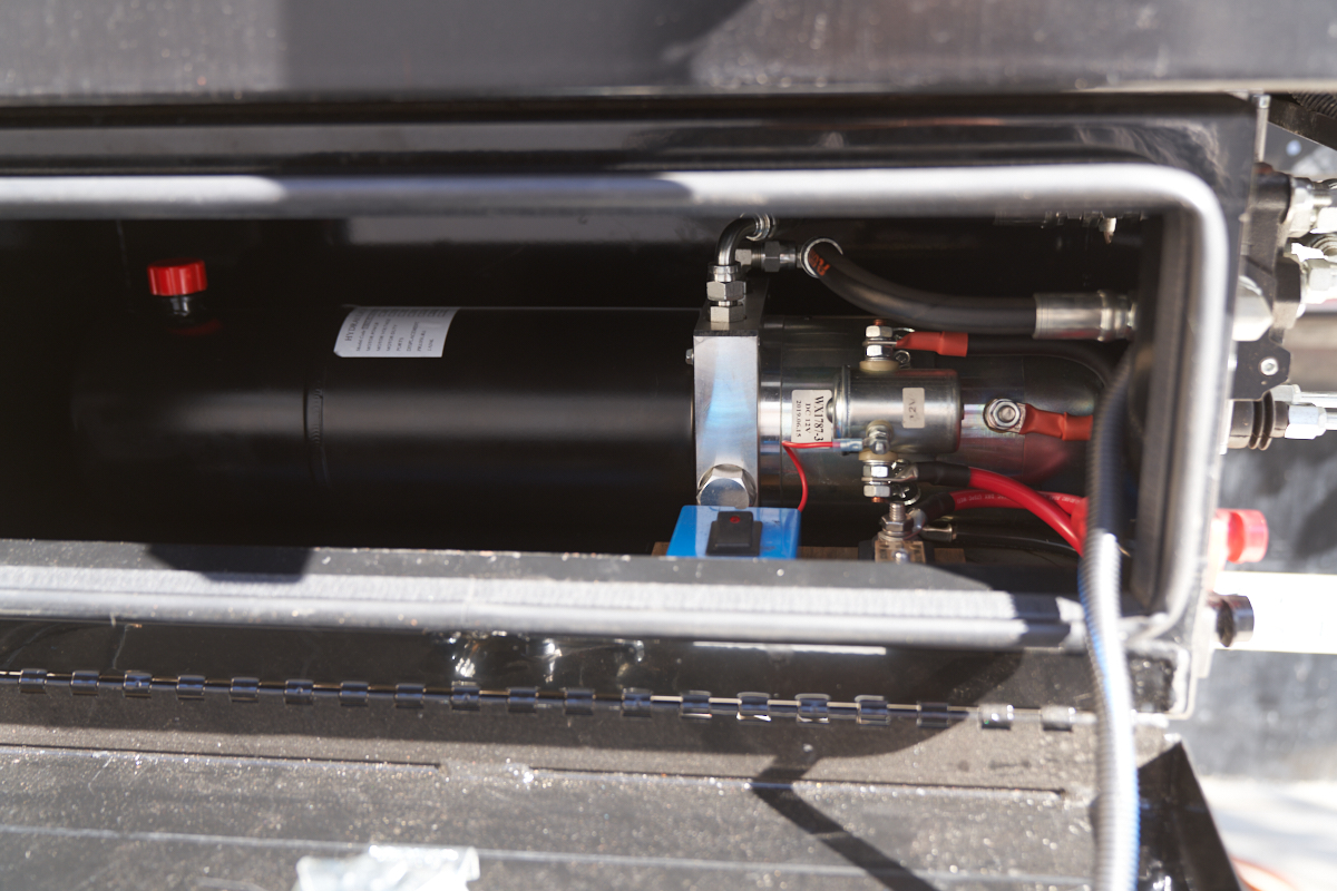 the outside of the rear tool box. Both power and hoses