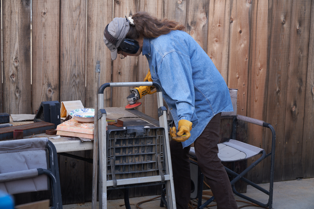 Kathleen helps with the surface preparation tasks on the 2x0.25"