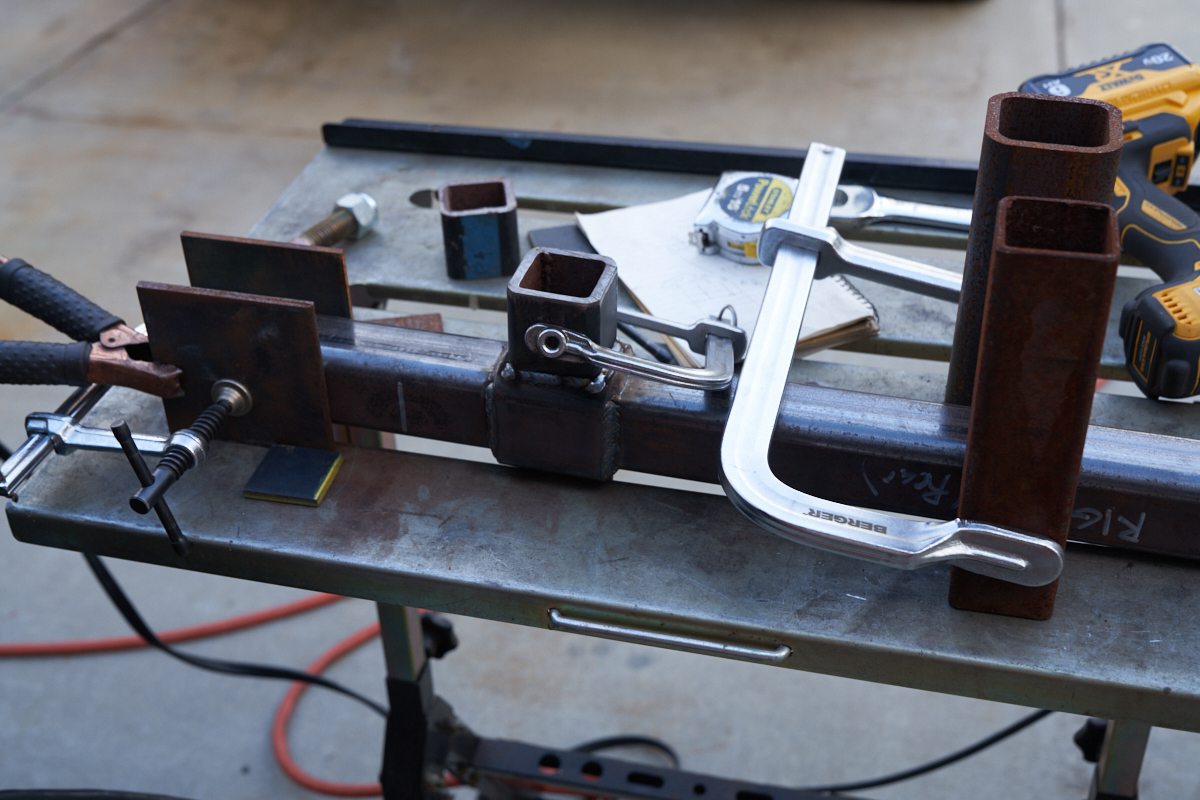 Two weld-on braces were needed for the next box: one fore and