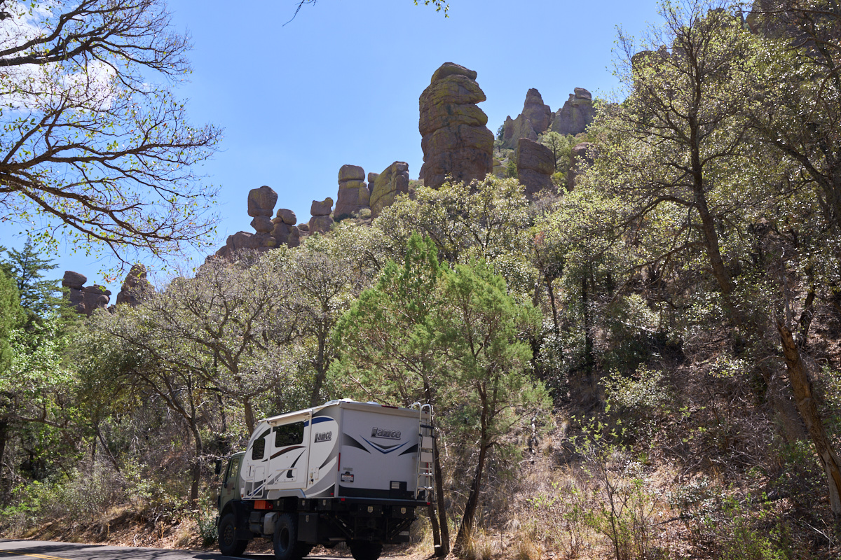 From Portal, we headed north then east into New Mexico. Our target for the night was City of Rocks south of Silver City. I had a great path planned that involved a long stretch of dirt road. The plan was flawlessly executed EXCEPT for the locked gates near the entrance to the highway. The gates required a 10-mile detour but after that, we were back on track.