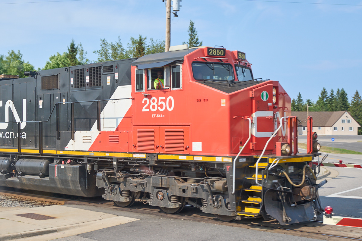 of the lead locomotive, we notice the engineer pointing at Thor.