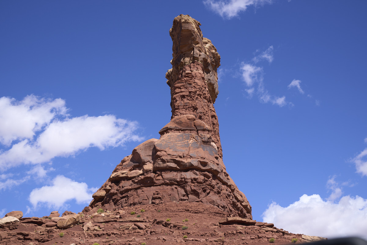 monument at the end of the fin towers over the trail.