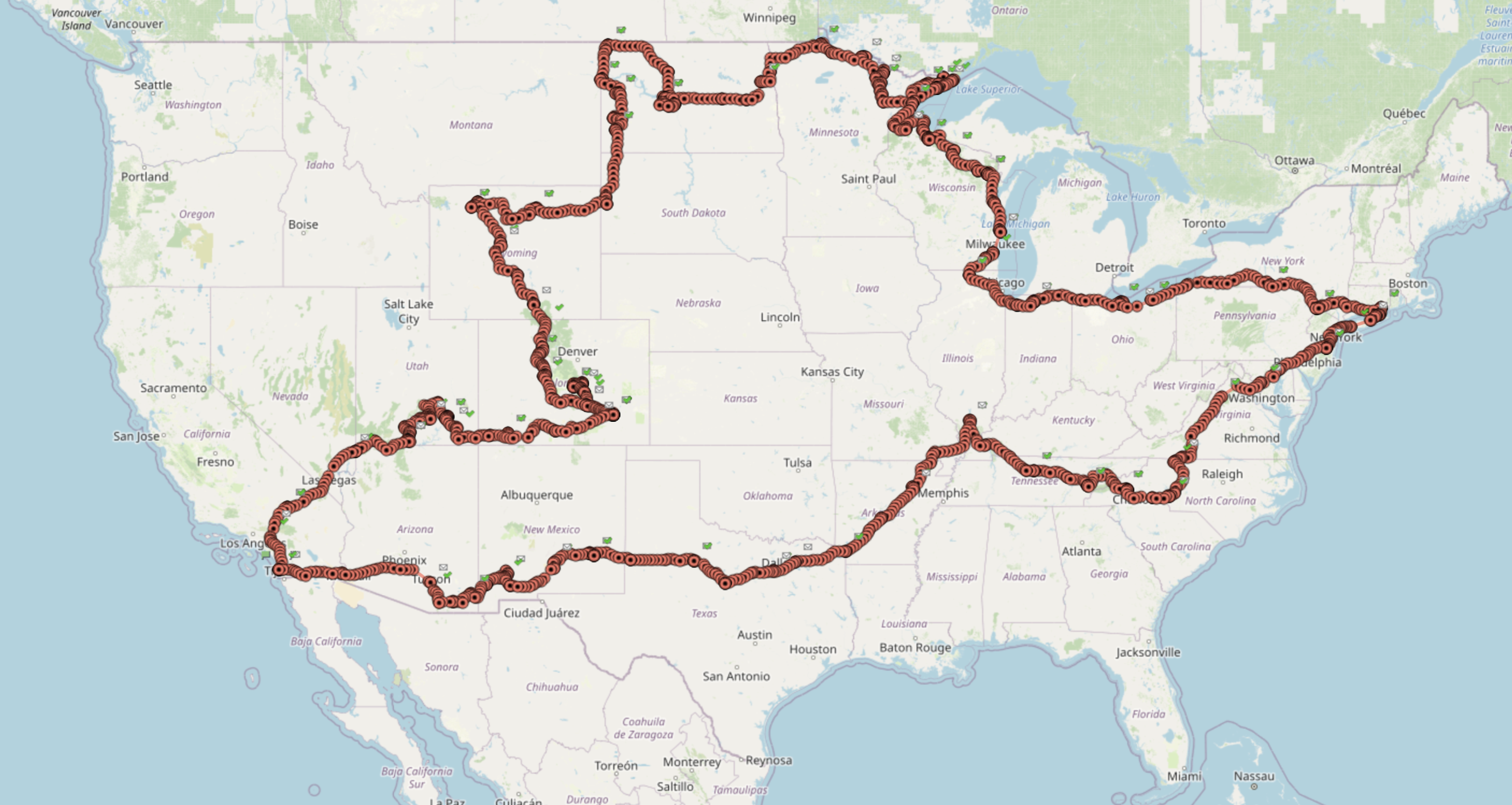 transcontinental trip to visit friends and family