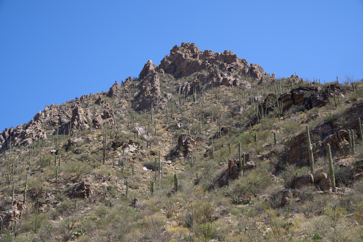 view of Thimble Peak on the ridge between Sabino Canyon and the