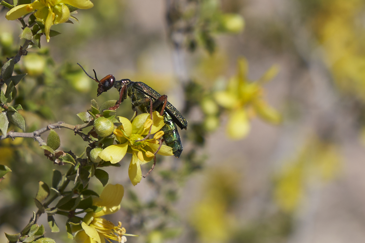 At a bio-break I spotted this odd insect working the blooms on a