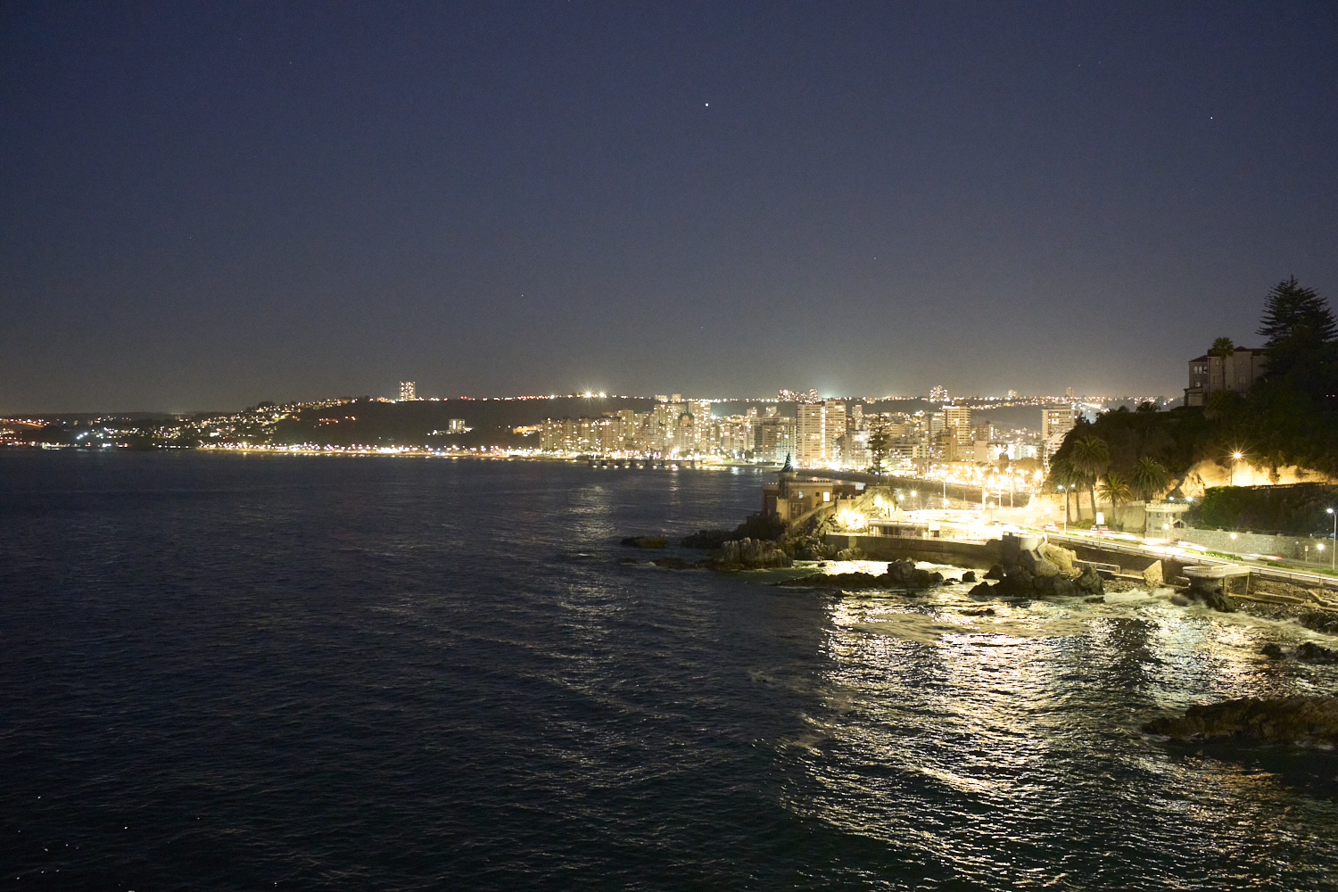 the camera on the balcony for a night shot of Vina del Mar from