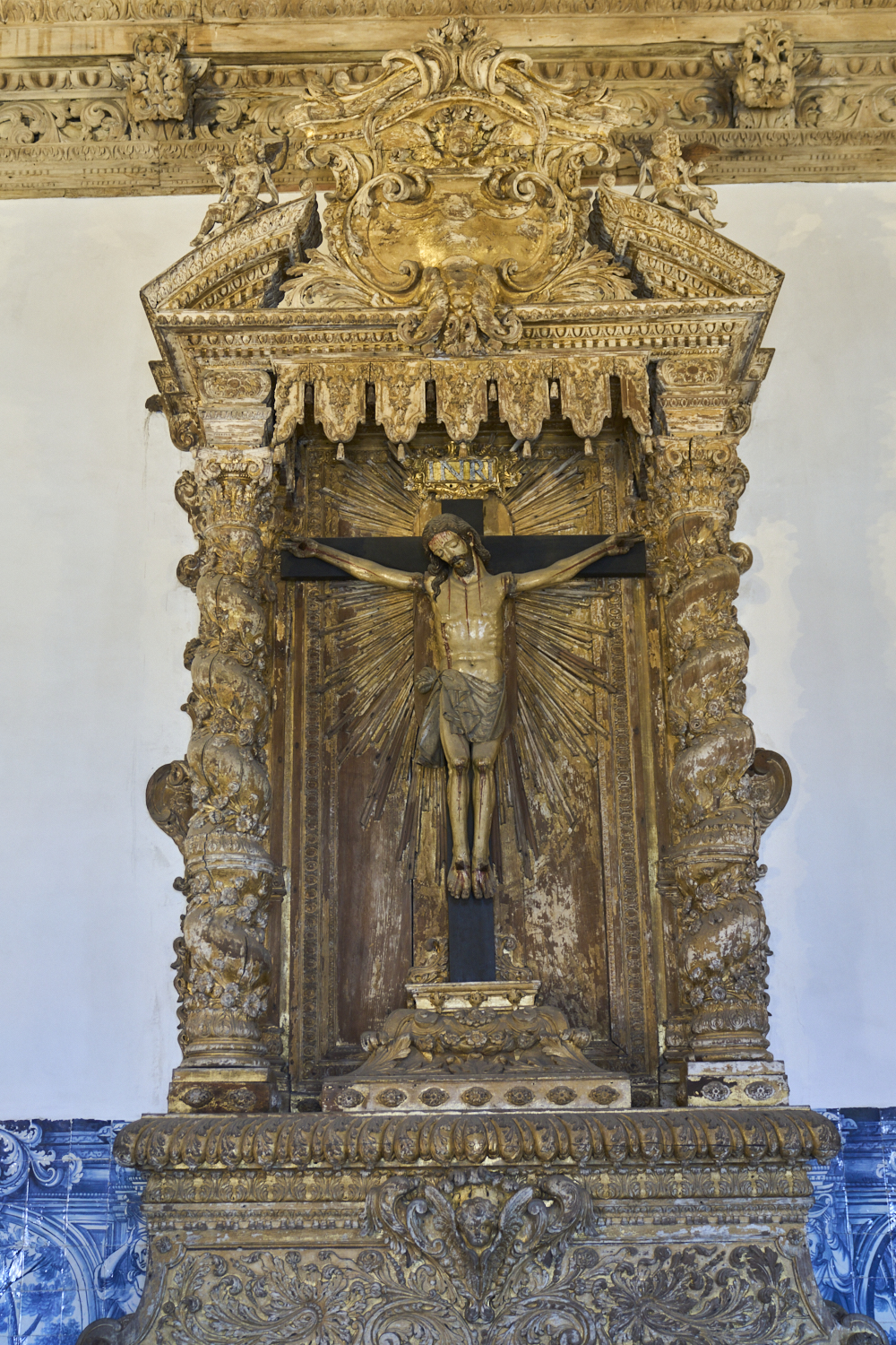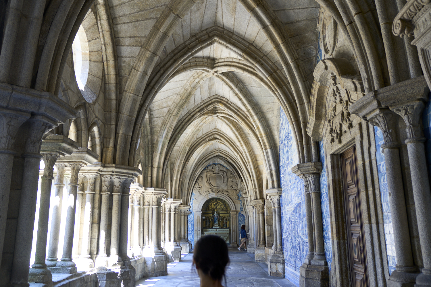 azulejos on the corridor walls around the courtyard with