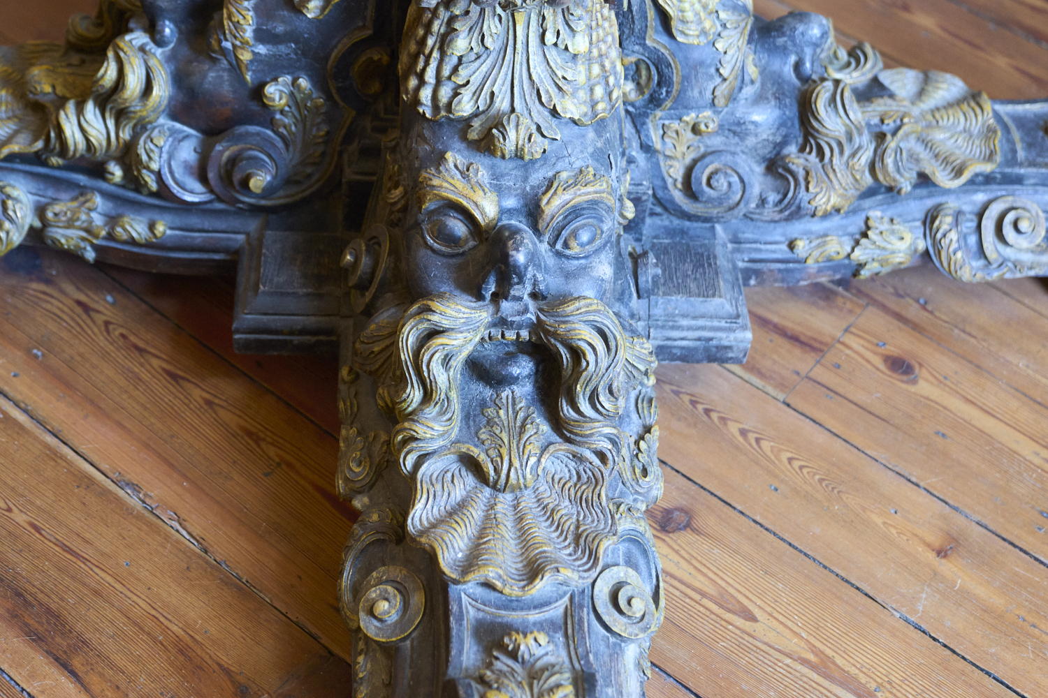 bible-holding podium had intricate carvings on the legs.