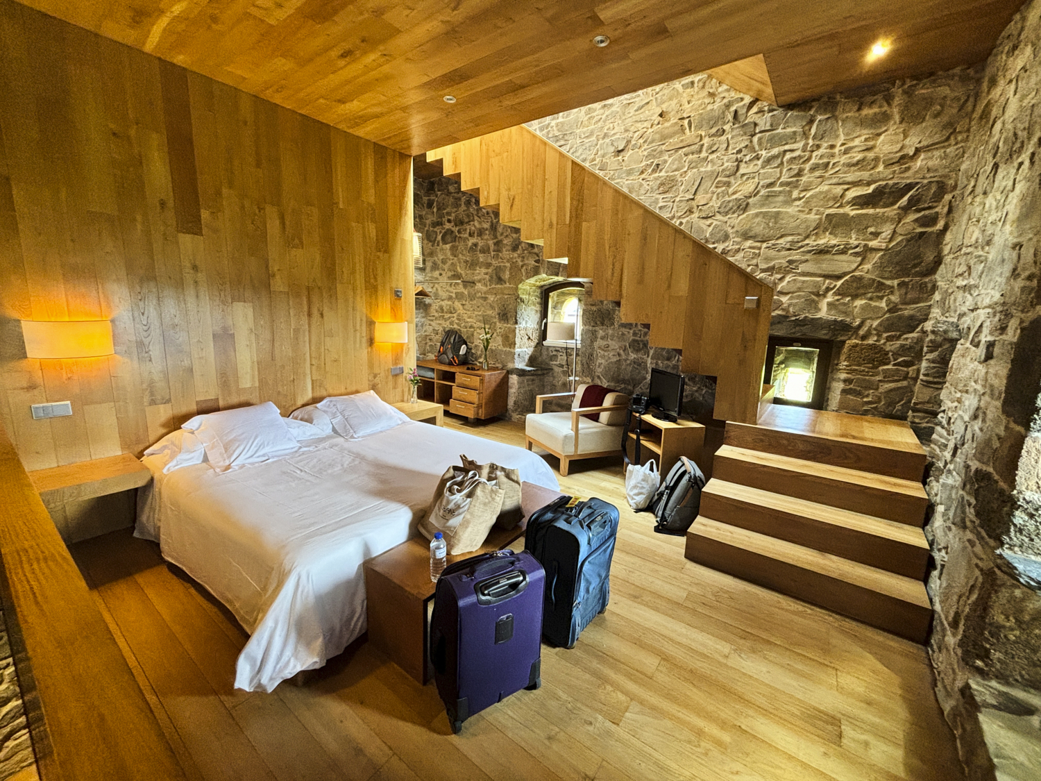 bedroom on the "first" floor was impressive. Stairs led up