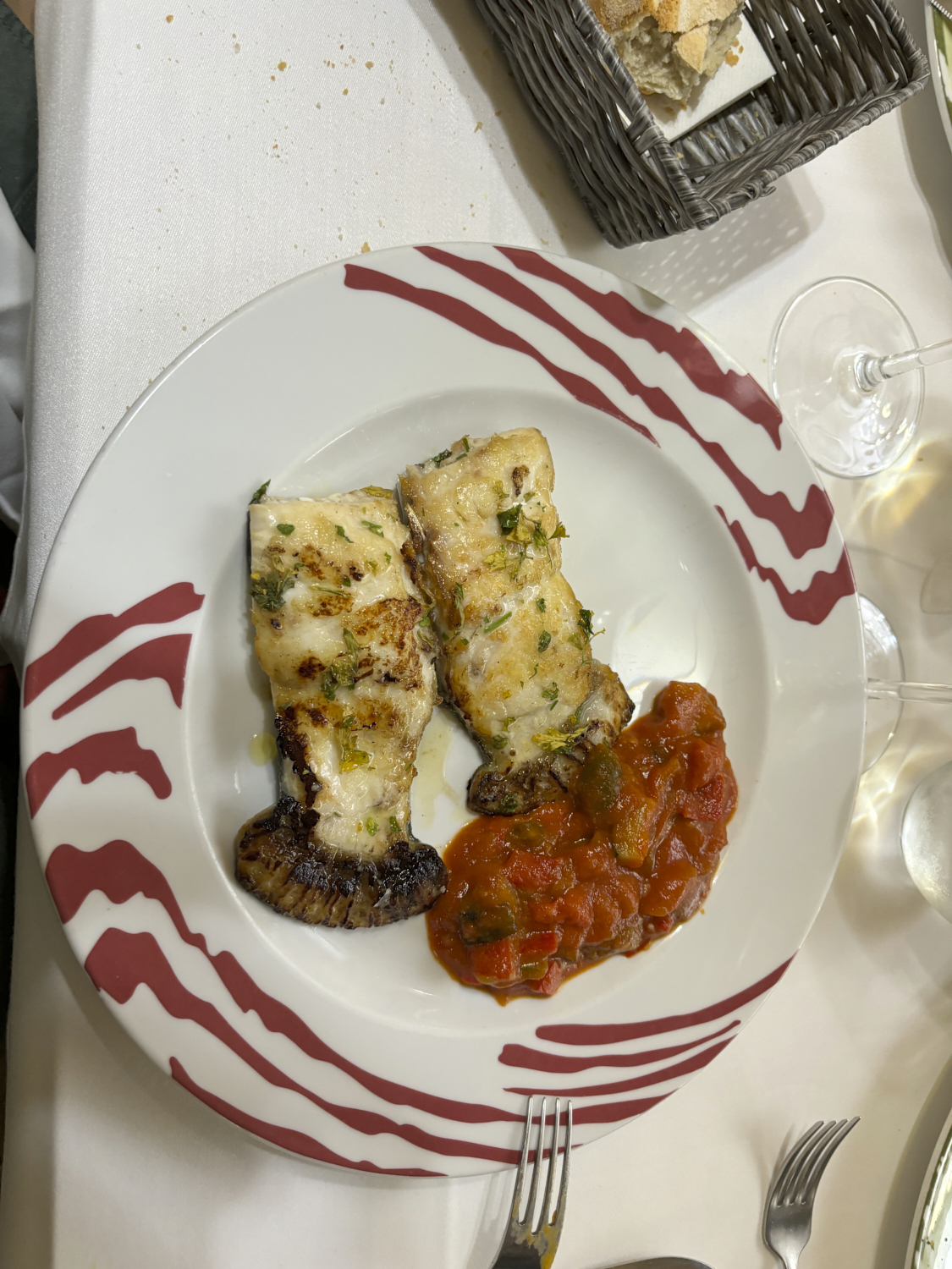 salmon fillet and homemade torta de queso. Excellent!