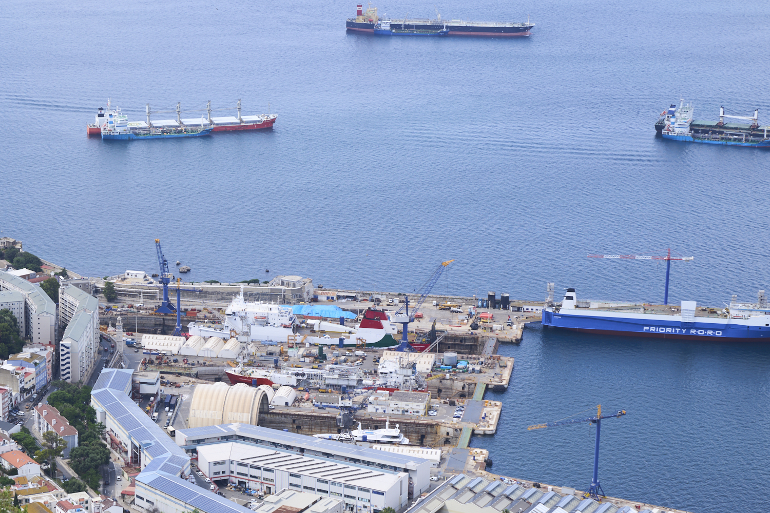 Gibraltar/Algeciras harbor. Visible in the distance in the