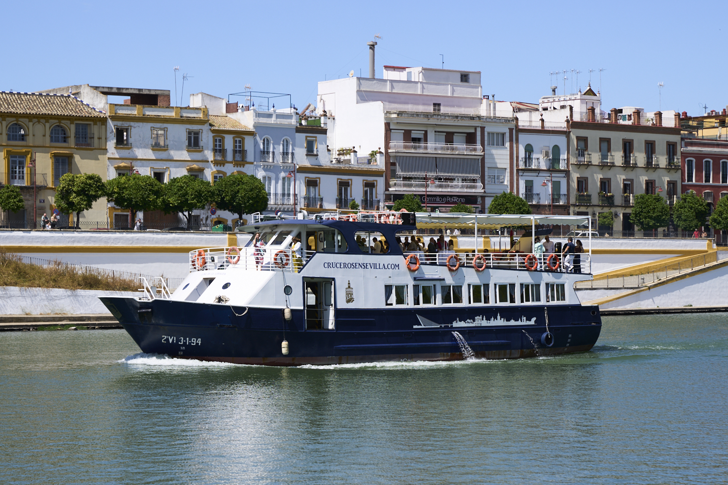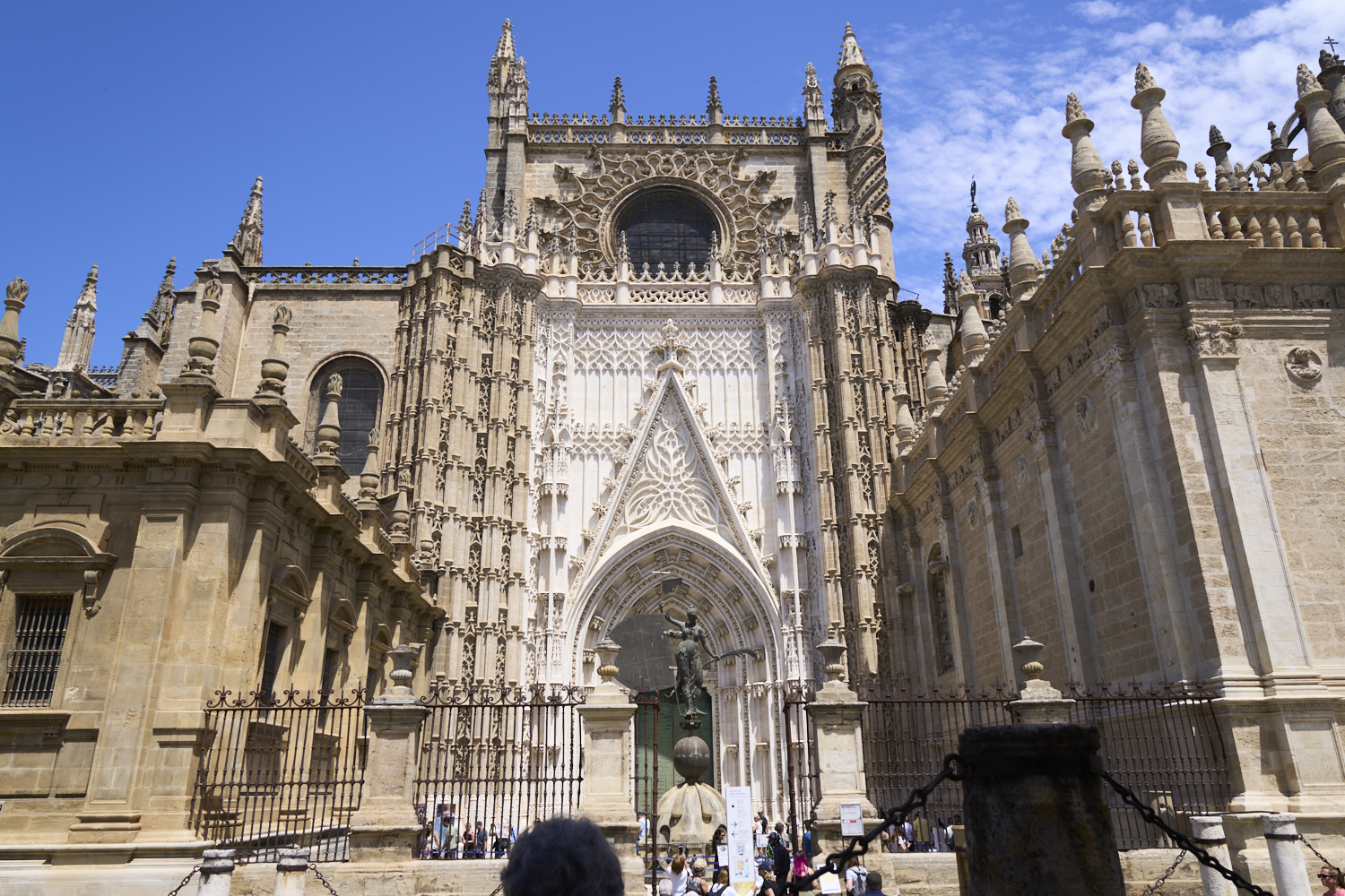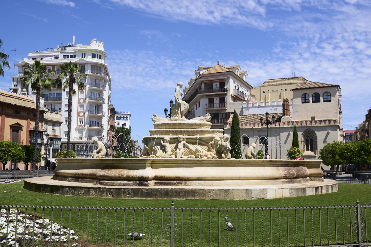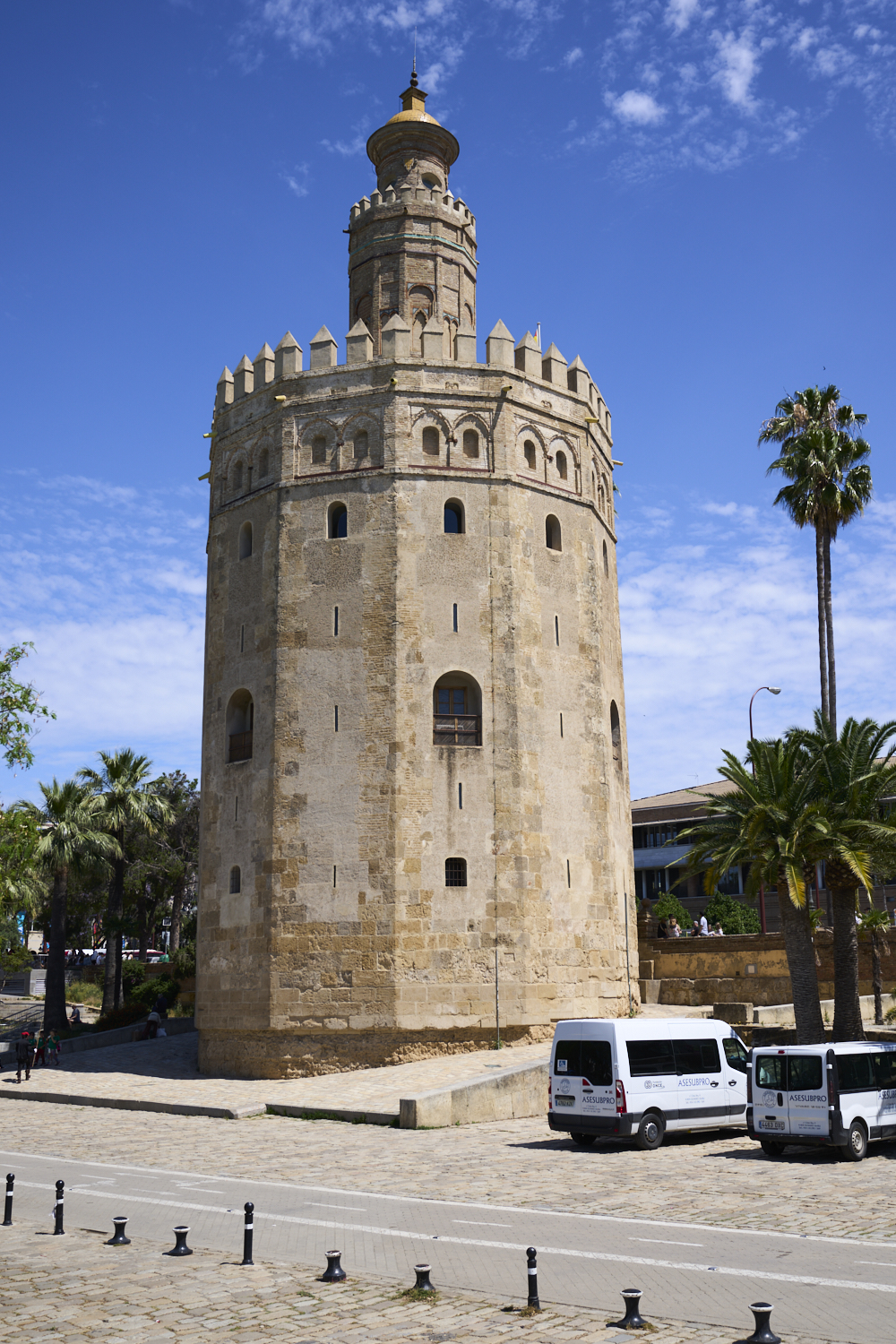 We inverted part of our trip in that we had to taxi from Gibraltar to the border, walk across the border, and then get a taxi to the Algeciras train station. From Algeciras we got the "slow train" to Seville. The trip shot a whole day, but it was reasonably comfortable except for the last, very slow leg. We got into the Santa Justa station and then got a short taxi ride to our hotel near the "center of the action" along the Guadalquivir River at the Triana Bridge. We stayed at the Bequer Hotel, which was very nice. We stayed at this hotel on one of our previous trips to Seville.