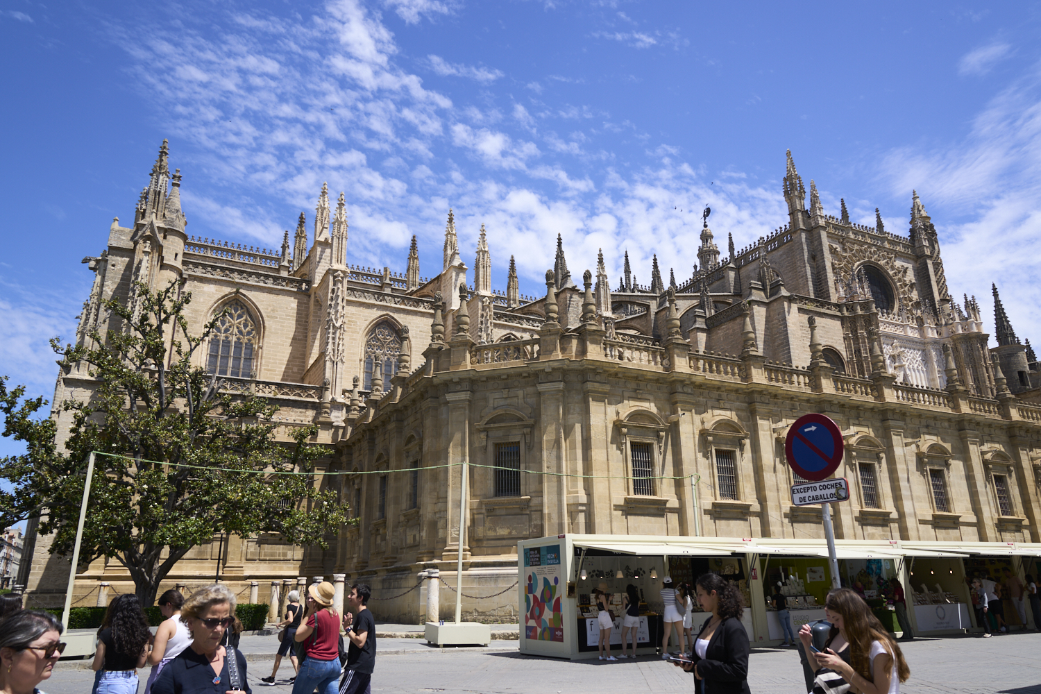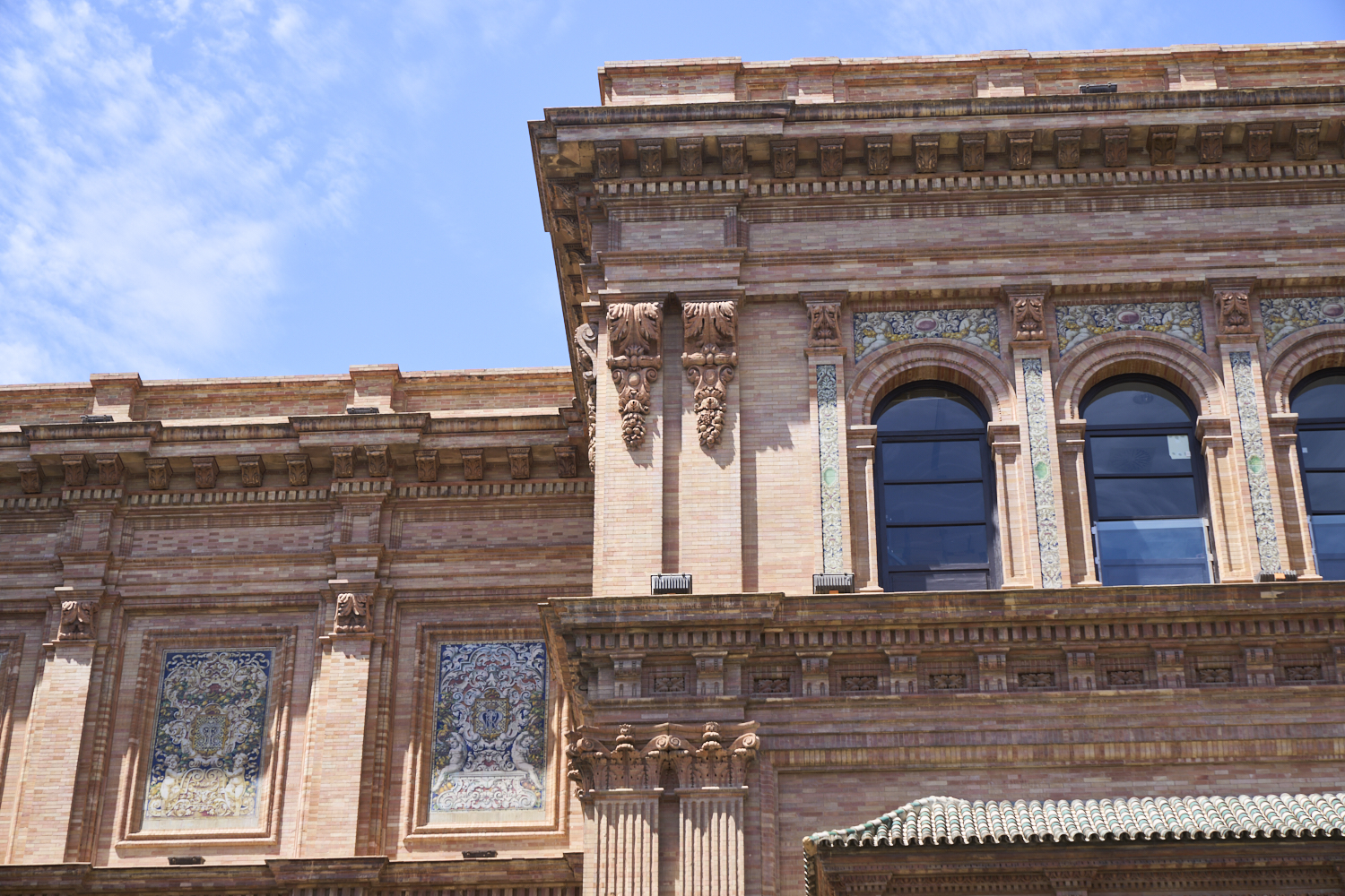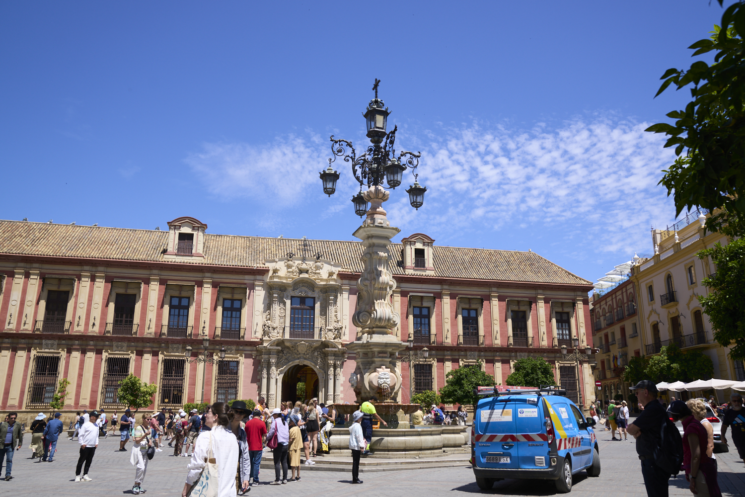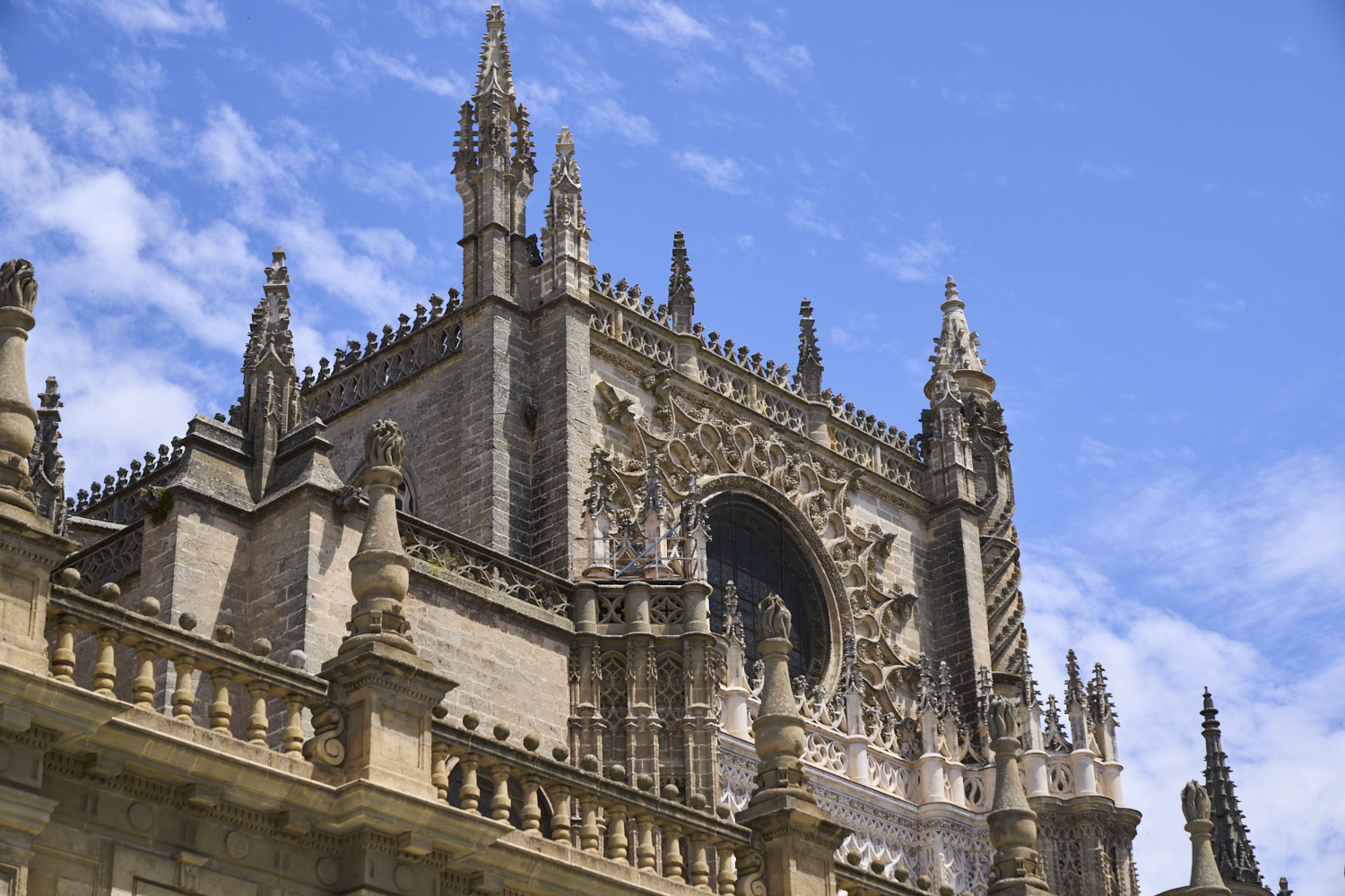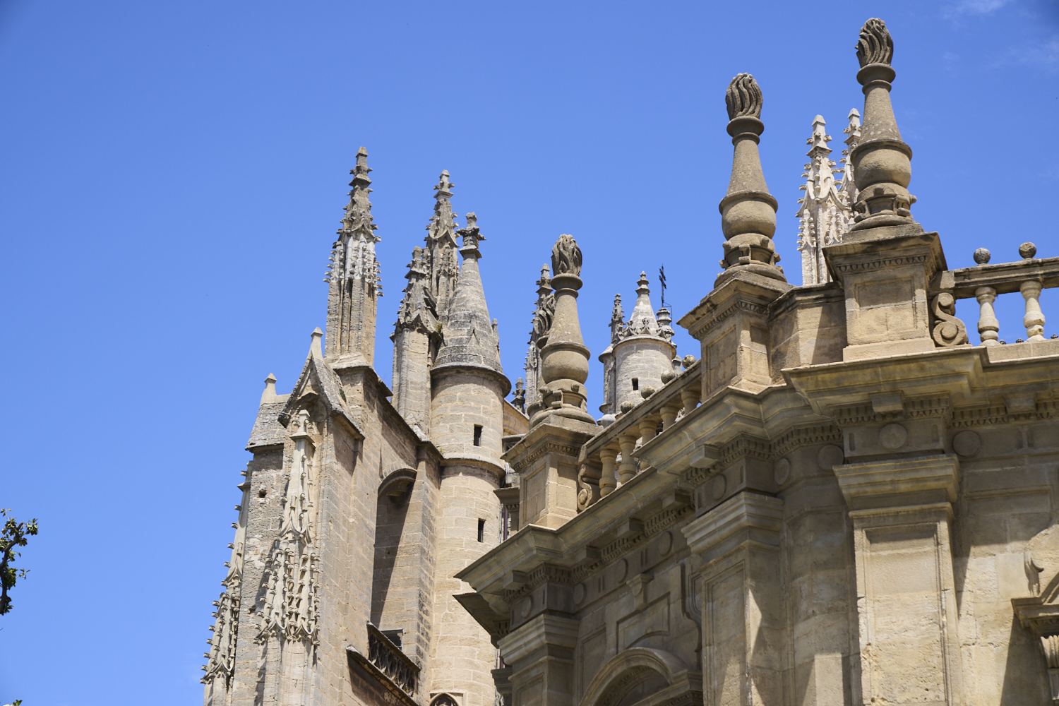 We inverted part of our trip in that we had to taxi from Gibraltar to the border, walk across the border, and then get a taxi to the Algeciras train station. From Algeciras we got the "slow train" to Seville. The trip shot a whole day, but it was reasonably comfortable except for the last, very slow leg. We got into the Santa Justa station and then got a short taxi ride to our hotel near the "center of the action" along the Guadalquivir River at the Triana Bridge. We stayed at the Bequer Hotel, which was very nice. We stayed at this hotel on one of our previous trips to Seville.