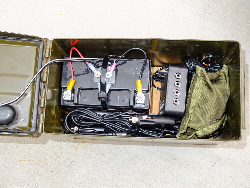 battery box from a jet ski battery, an ammo can and a 3-plug