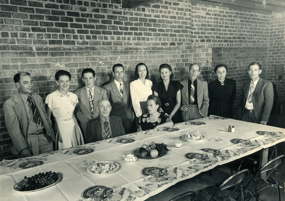 The Caid family: (L-R rear) Earl, Alice, James, Bob, Sue (first wife), Gertrude, Tom, Genie, Arthur (Butch). Sitting are Thomas A. and Teresa. This photo was taken at a 1957 company ten year anniversary celebration held at the shop on Eight Street in Tucson. That shop still stands today. The Quonset hut that served as the main work area is now a bar appropriately called "The Hut".