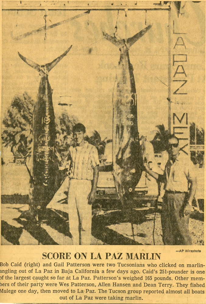 Bob was an avid fisherman and pursued his passion with vigor over the years, fishing many locations in Mexico and Hawaii. And he was quite successful and along the way causing several newspaper articles that extolled the size of the fish that he caught. One broadbill marlin was 404 pounds, a near-record size.