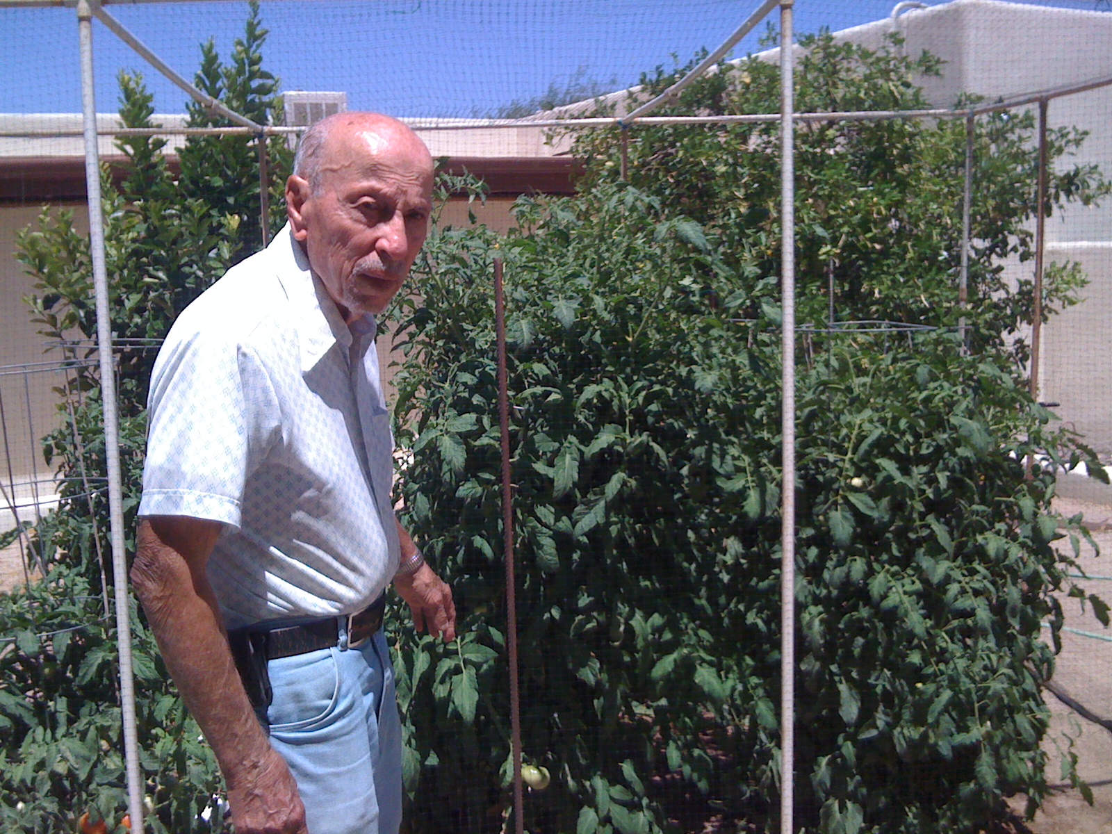 Later at another house on Camino de Oeste, he built an enclosure large enough to allow him to have his fruit trees and protect them from the birds and desert animals. The structure was large and required high maintenance, but was fully effective. The structure even included custom radiant heaters designed to prevent his crops from freezing. These consisted of custom sheet metal boxes and natural gas burners. Very exacting.