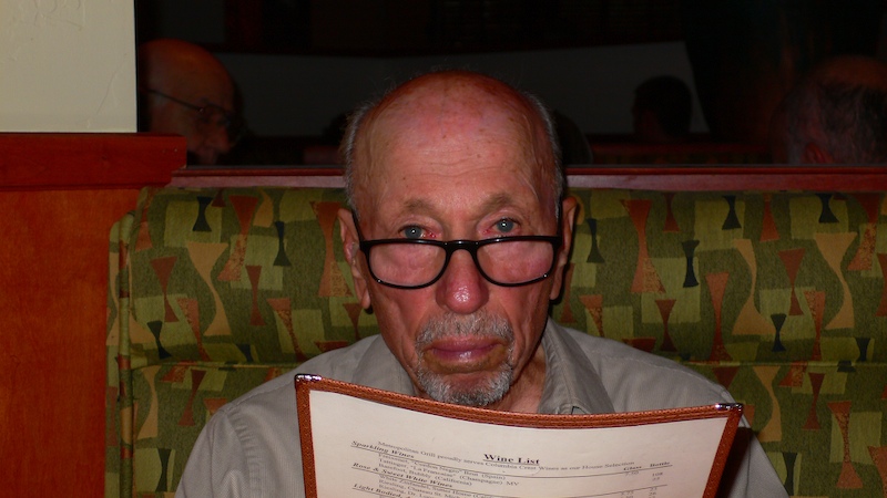 Age did take its toll on Bob's vision and he had to have specialized glasses to read in dim light. Metropolitan Grill, Tucson, AZ, 2006.