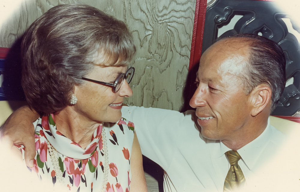 Callie and Bob at her 90th birthday party at the Oro Valley house. Note the photos on the wall.