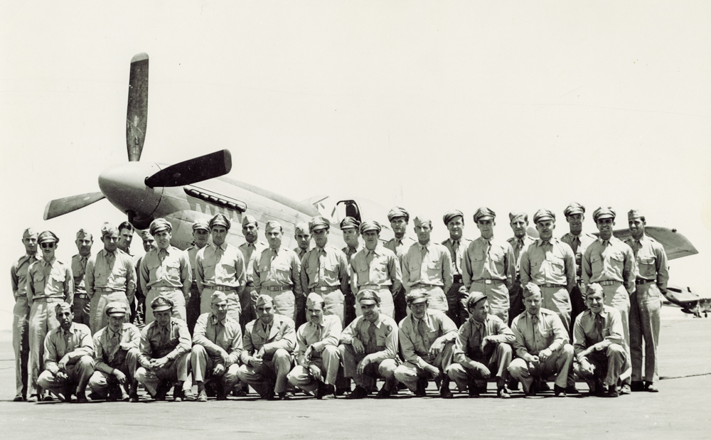 After combat duty, Bob was assigned as an instructor pilot for the P-51 Mustang fighter. This is a photo of one of his classes upon graduation at Biggs Field near El Paso, TX.