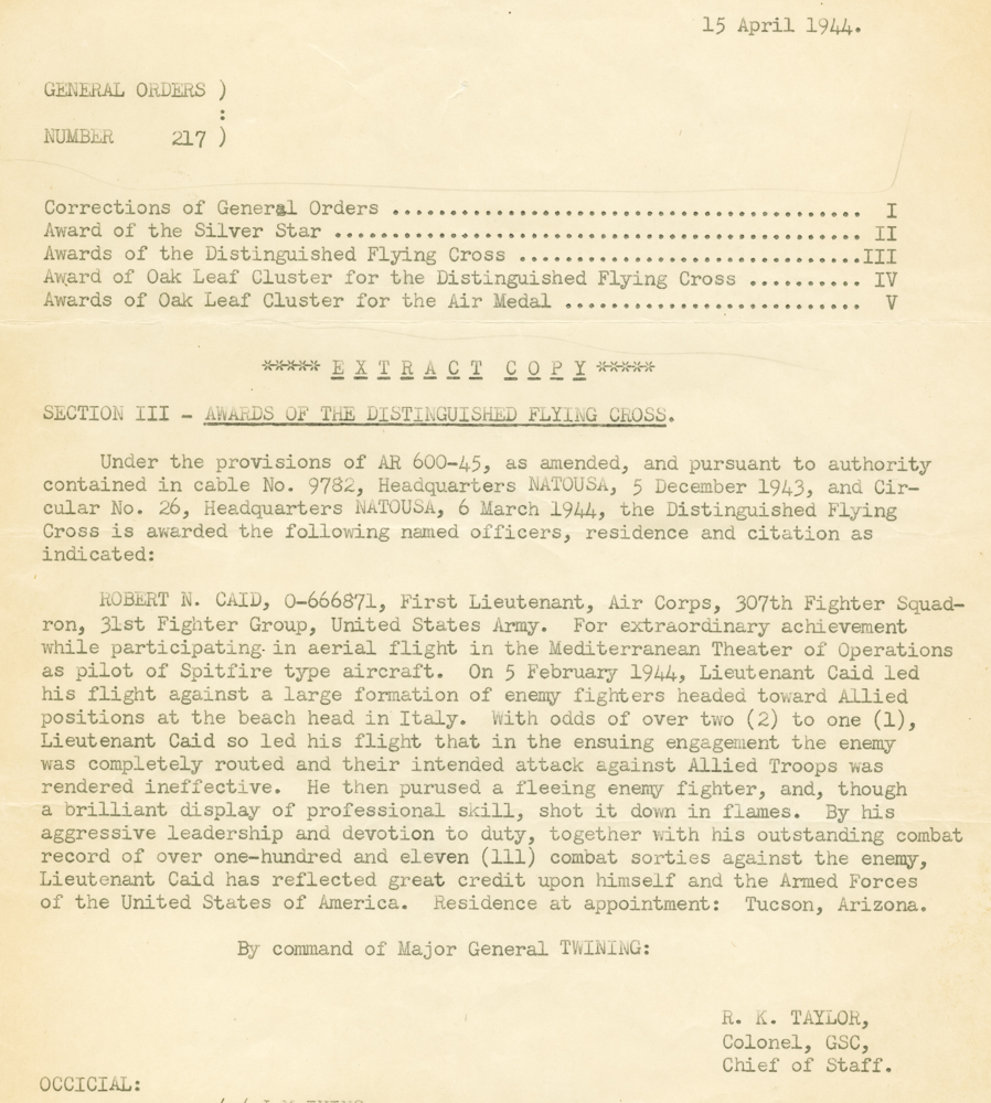 The orders for the award of the Distinguished Flying Cross in recognition of valor and success in air combat.
