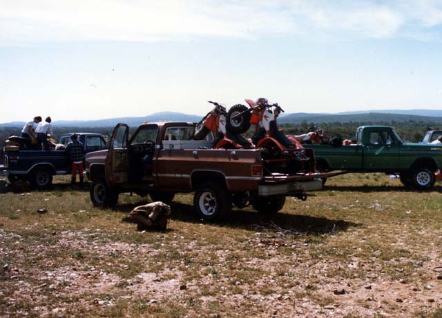 Not having a trailer resulted in logistical challenges in getting both 3 wheelers in the bed of the truck at the same time. We had to stack them like pancakes to make them fit. The biggest issue is height of the lift and the fact that it is a 2 or 3 man operation to get the 350+ pound machine into the pickup bed. Getting them down is somewhat easier, but care is still required.