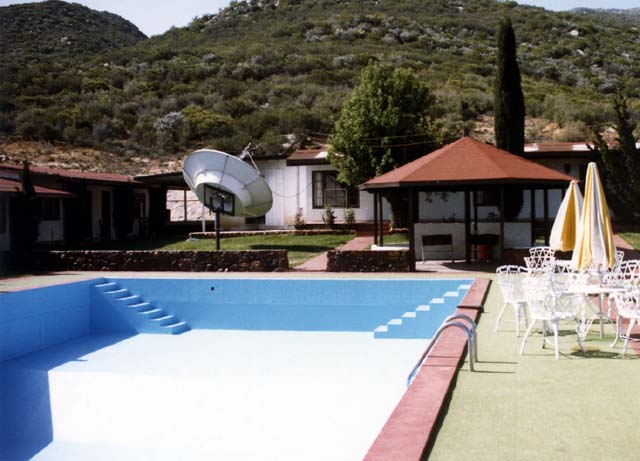 Here is a view looking to the east from the office. Arroyo San Rafael is in the center, the river, and flows down from the 10,000 foot peak of Pichacho del Diablo (Peak of the Devil) that is to the south east of Mike's. The buildings on the right (from right to left) are the garage, workshop/storage and diesel generator shack. The workshop would later become important as Mike had something that I would desperately need to get back to the United States.
