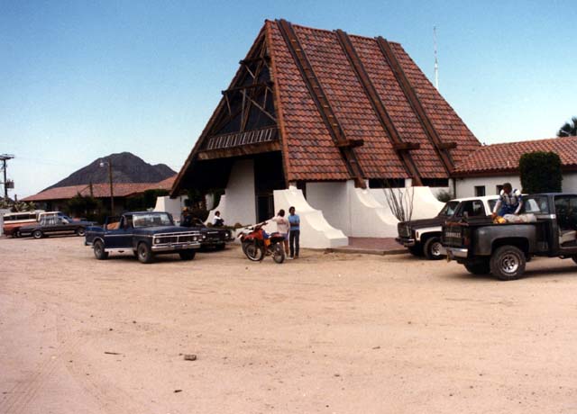 The group stayed at some motel on the water, but I cannot remember the name of the place. Below is a photo of the office area. Note that the parking lot is dirt. I do recall the group ate at an interesting resturant and I had broiled quail for dinner.