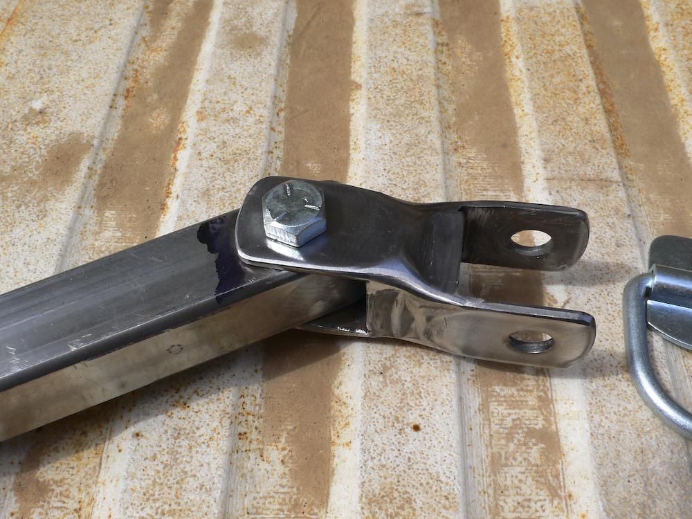 To move the step, a new attachment bracket is needed. Based on Pete's design suggestions, I fabricated one out of a couple of bolts and some 1.5" angle.