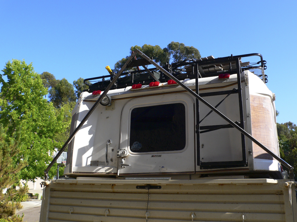 Above, you can see the tension member has been added. This member is 1x1 angle and connects to the mounting frame of the roof rack.